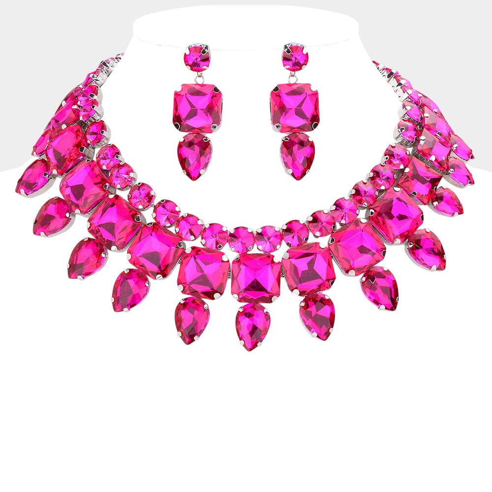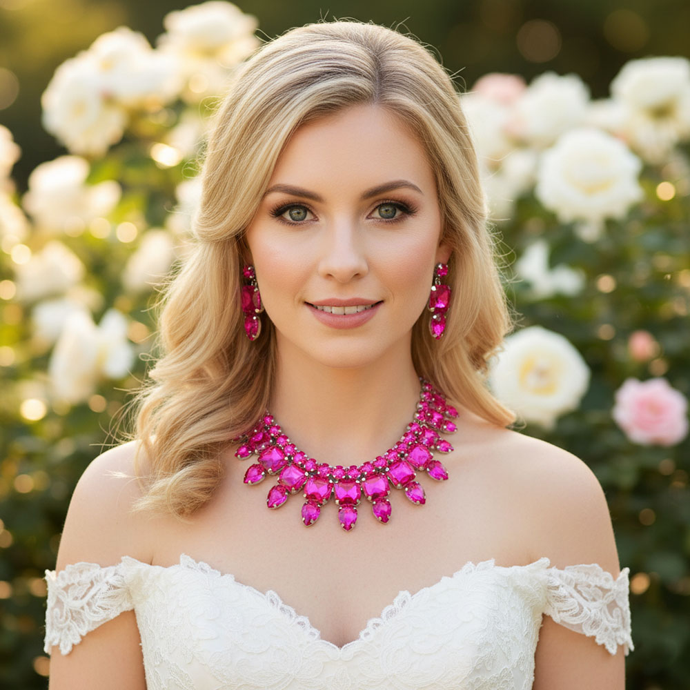 • Stunning statement jewelry set featuring a dramatic necklace and matching earrings adorned with large gemstones. Perfect for special occasions, parties, or evening events, adding glamour and sophistication to any outfit. A show-stopping accessory for an elegant, confident look.