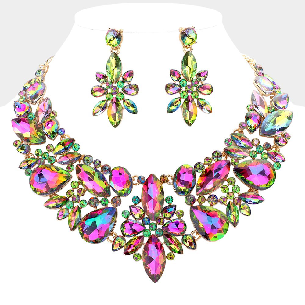 Teardrop Glass Stone Cluster Embellished Evening Bib Necklace
