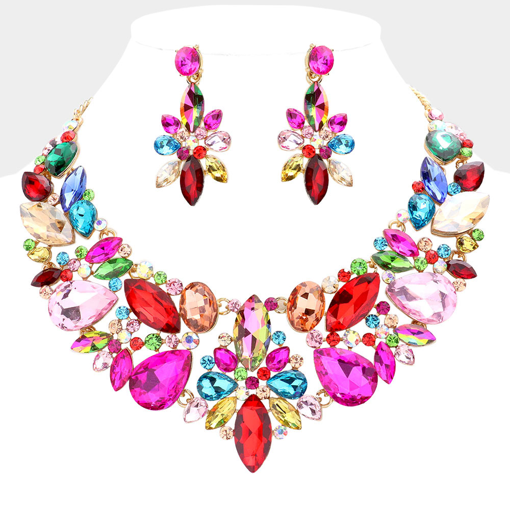 Marquise CZ Stone Embellished Rhinestone Paved Bar Collar Necklace