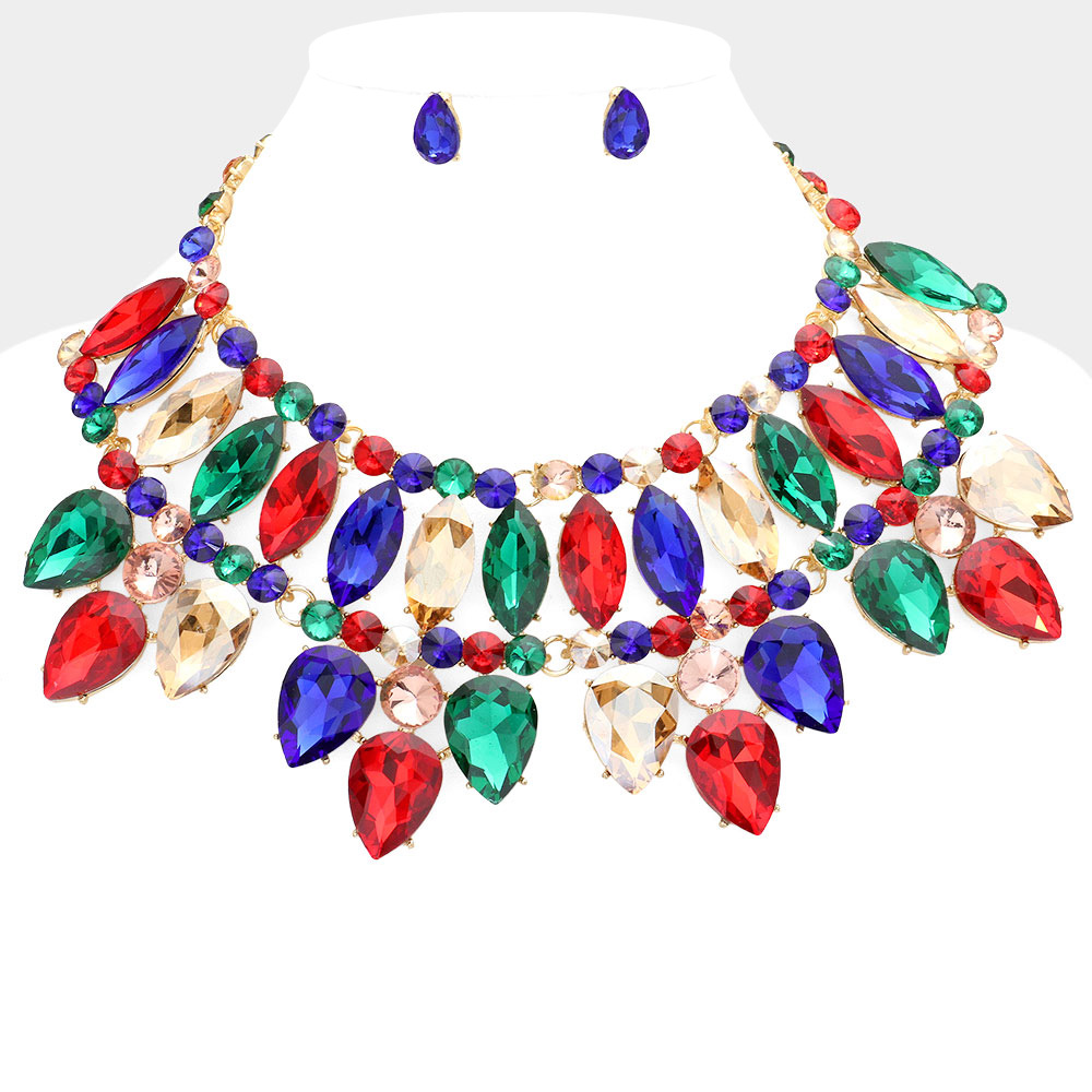Rhinestone Pave Patterned Textured Metal Necklace Jewelry Set