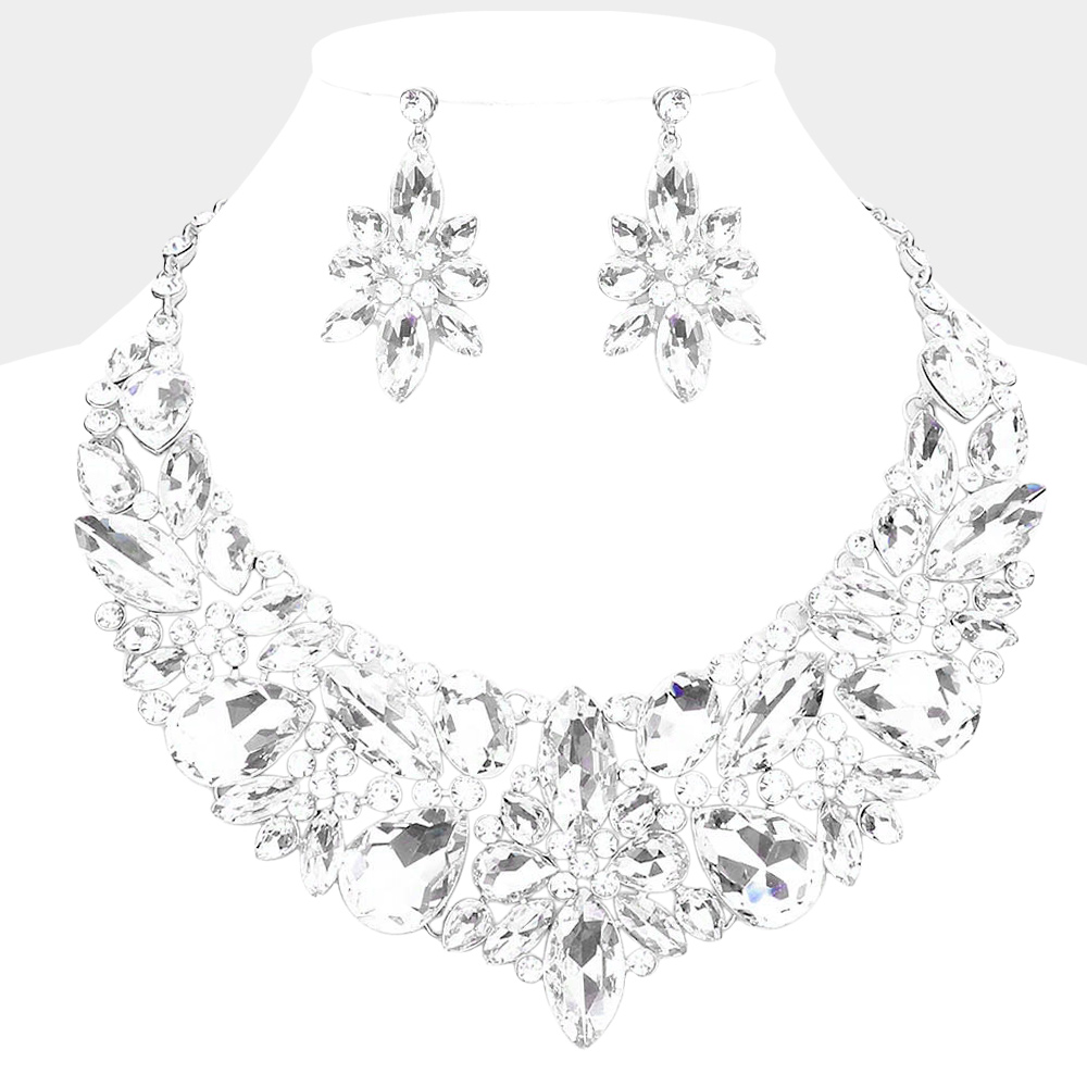 Teardrop Stone Cluster Embellished Bib Statement Evening Necklace