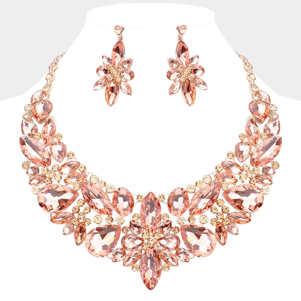 Details • Necklace Size : 17" + 3" L • Decor Size : 2.4" L • Earring Size : 2" L • Dazzle in timeless elegance with this rhinestone statement necklace and earring set. Featuring bold clustered crystals in a floral-inspired design, this matching set is perfect for weddings, galas, and special occasions. The adjustable necklace ensures a comfortable fit, while the lightweight earrings add just the right amount of sparkle. A must-have for bridal looks, evening wear, or anyone wanting to make a glamorous entrance.