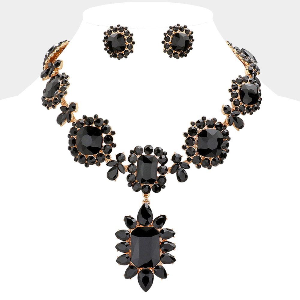 • Elegant statement necklace and earring set featuring brilliant crystal accents in a bold design. Perfect for weddings, formal events, or evening wear, this dazzling jewelry set adds glamour and sophistication to any outfit with its radiant sparkle and timeless appeal.