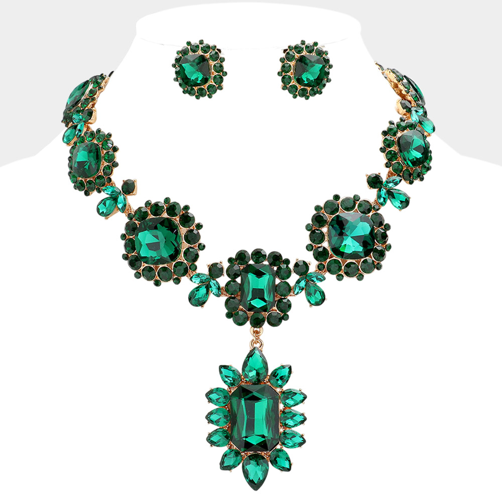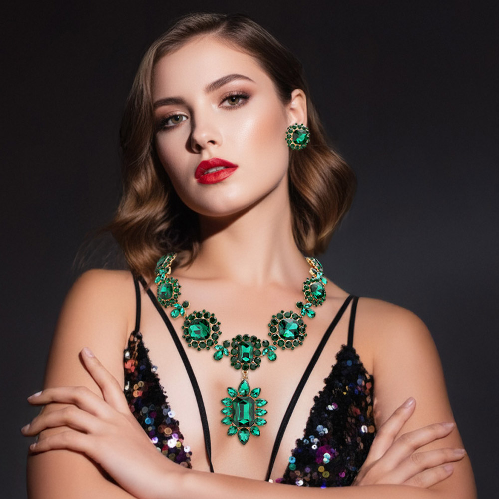 • Elegant statement necklace and earring set featuring brilliant crystal accents in a bold design. Perfect for weddings, formal events, or evening wear, this dazzling jewelry set adds glamour and sophistication to any outfit with its radiant sparkle and timeless appeal.