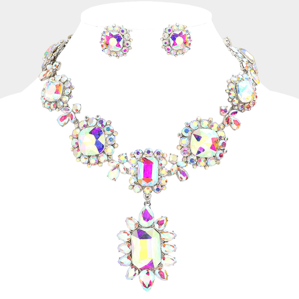 • Elegant statement necklace and earring set featuring brilliant crystal accents in a bold design. Perfect for weddings, formal events, or evening wear, this dazzling jewelry set adds glamour and sophistication to any outfit with its radiant sparkle and timeless appeal.