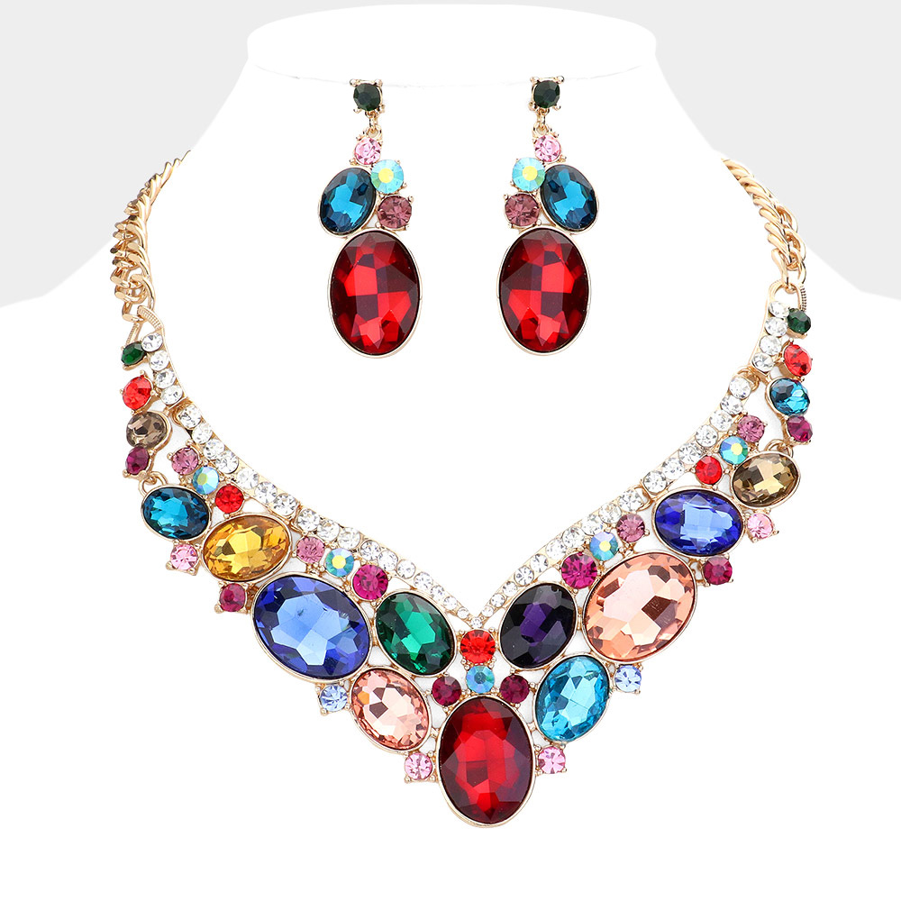 Oval Glass Crystal Evening Necklace Oval Glass Crystal Evening Necklace Oval Glass Crystal Evening Necklace