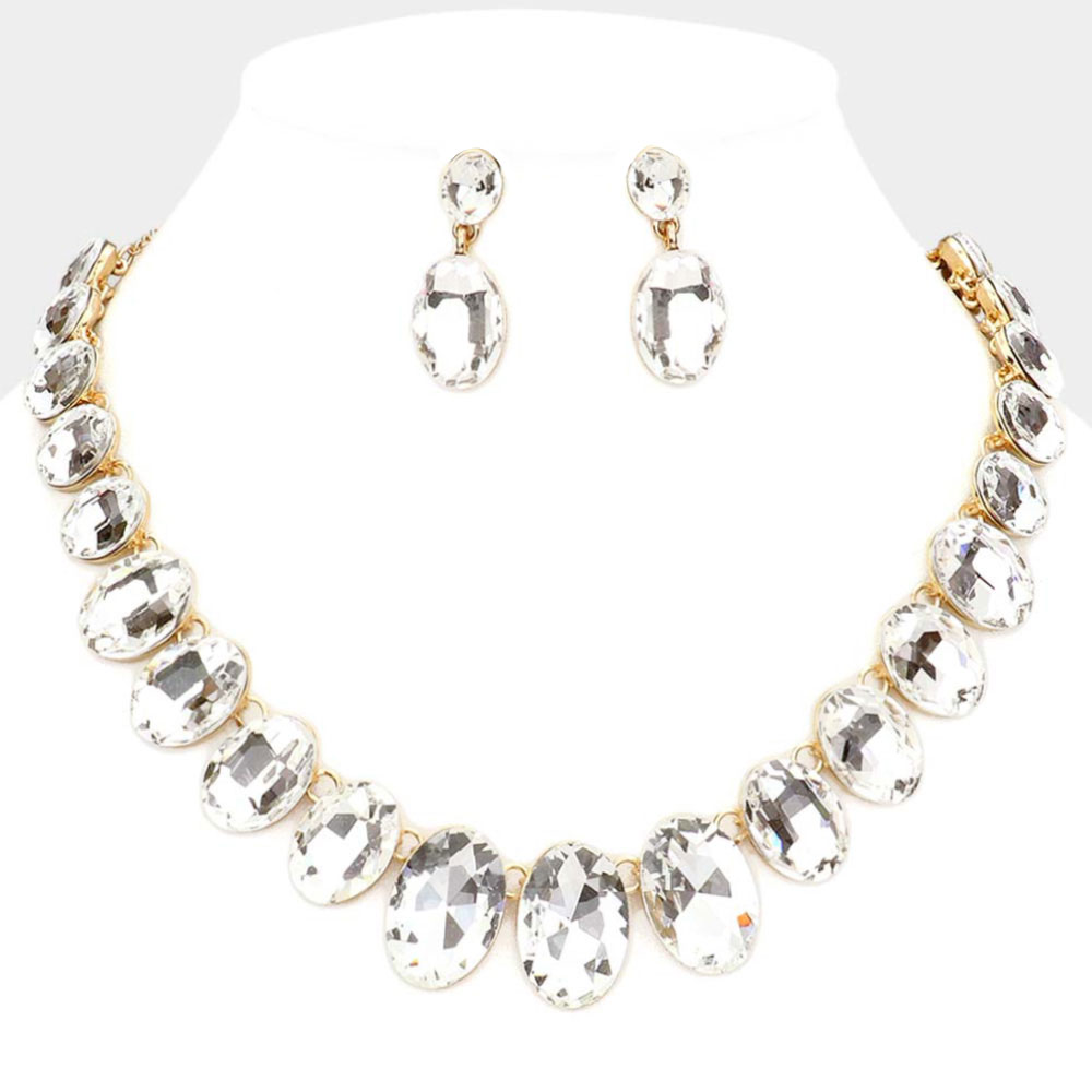Oval Stone Link Evening Necklace