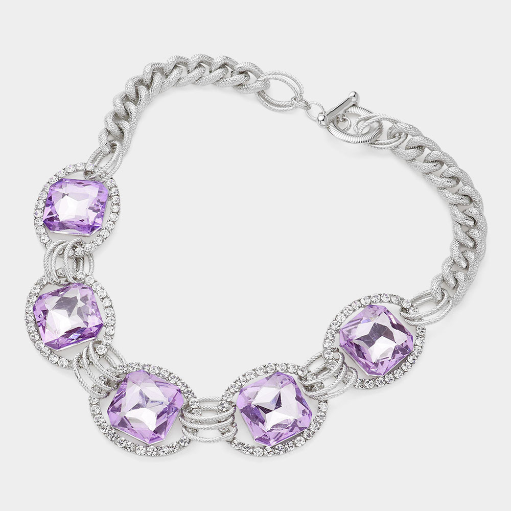 Pave Trim Glass Crystal Link Necklace