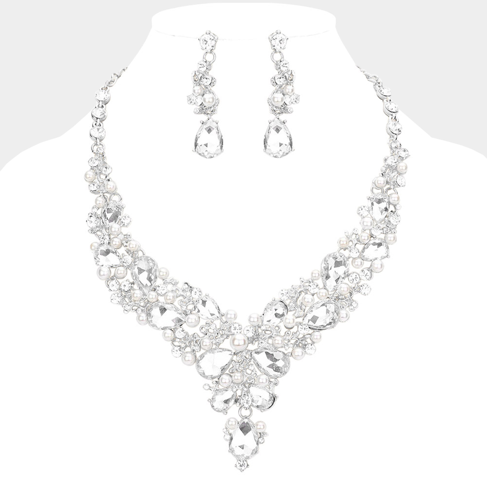 Details • Necklace Size : 20" + 3" L • Decor Size : 2.75" L • Earring Size : 2.25" L • Stunning statement jewelry set featuring a bold necklace and matching dangle earrings with teardrop accents. Perfect for weddings, parties, and formal events, this elegant set adds glamour and sophistication, making it an ideal accessory for special occasions.