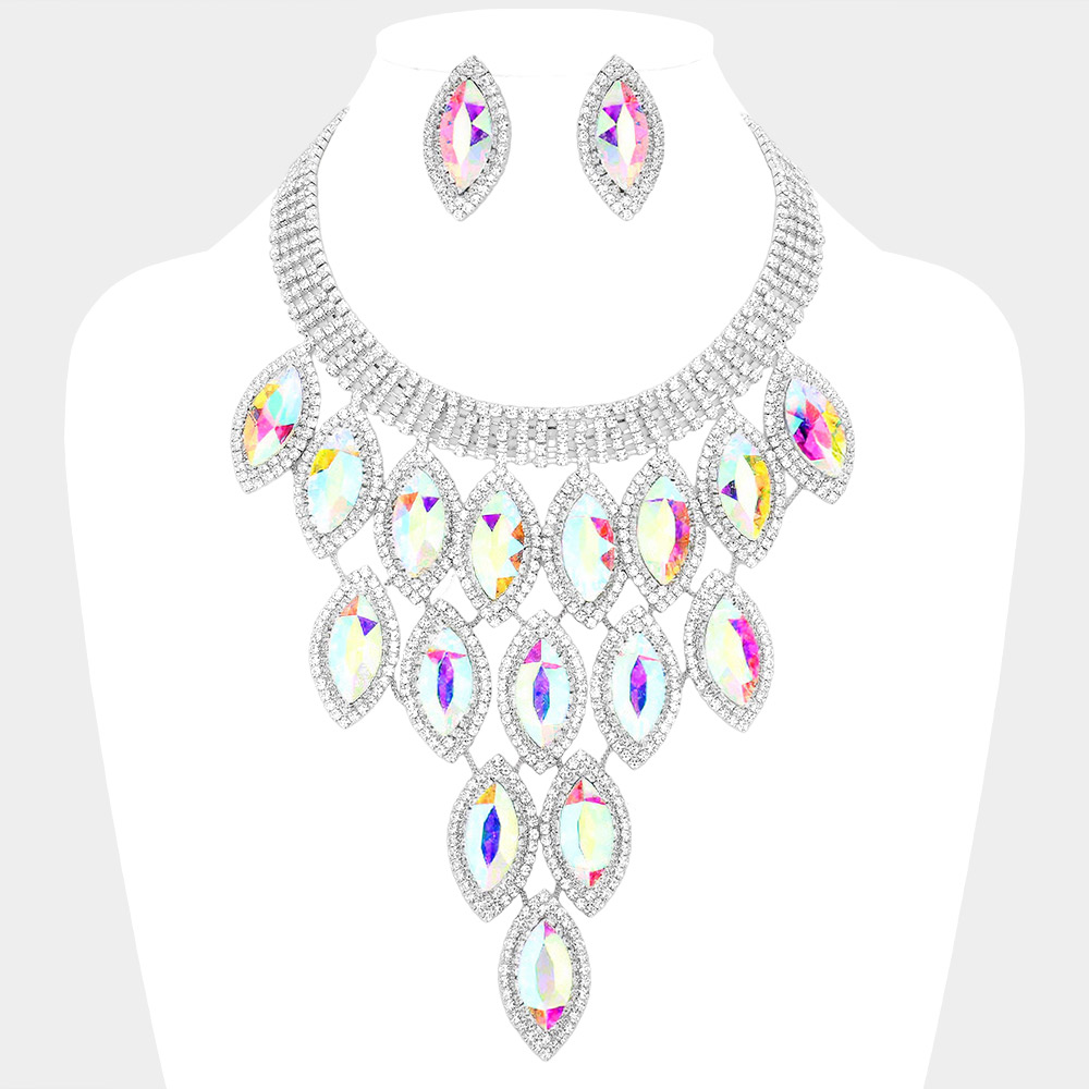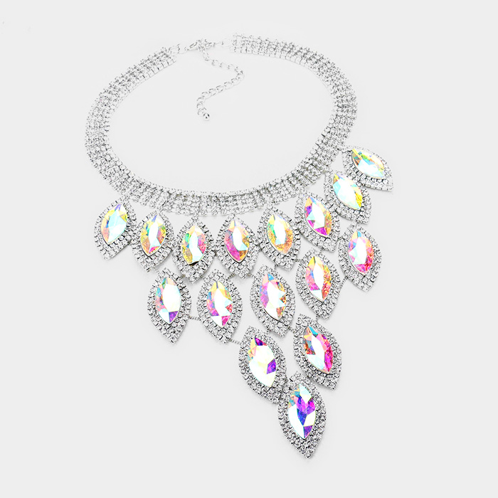 Teardrop Stone Pointed Rhinestone Paved Necklace