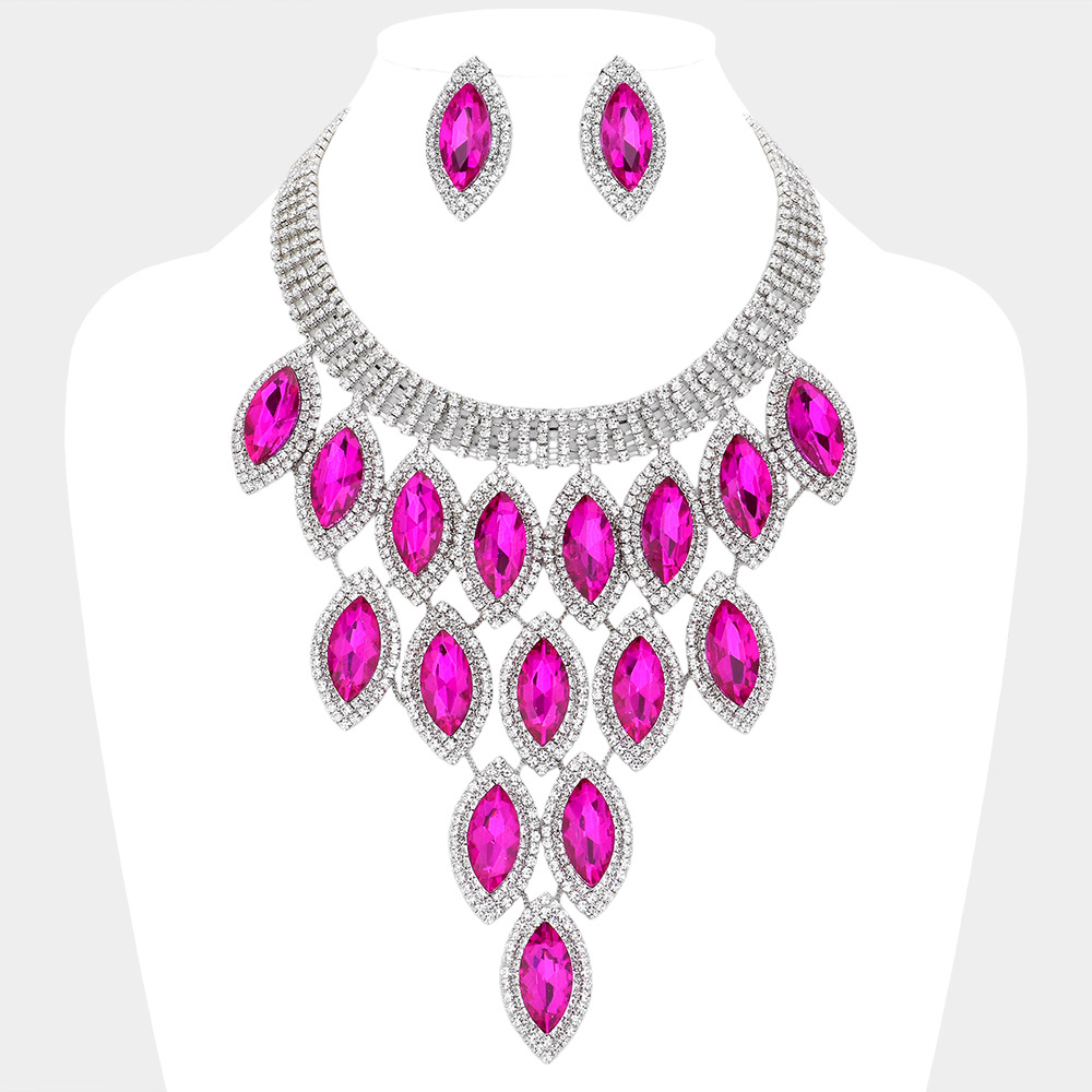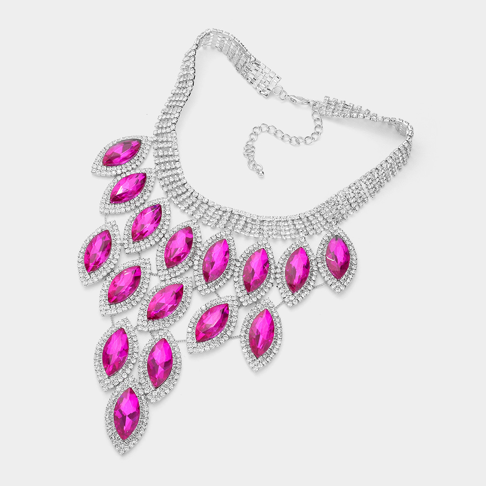 Rhinestone Pave Oval Stone Cluster Vine Necklace