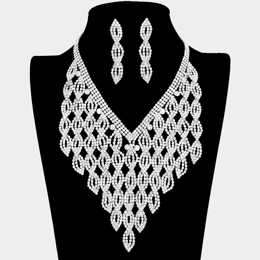 Teardrop Stone Cluster Accent Rhinestone Ornate Scrollwork Rhinestone Necklace