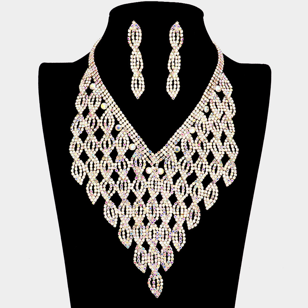 Teardrop Accent Ornate Marquise Stone Cluster Embellished Rhinestone Necklace