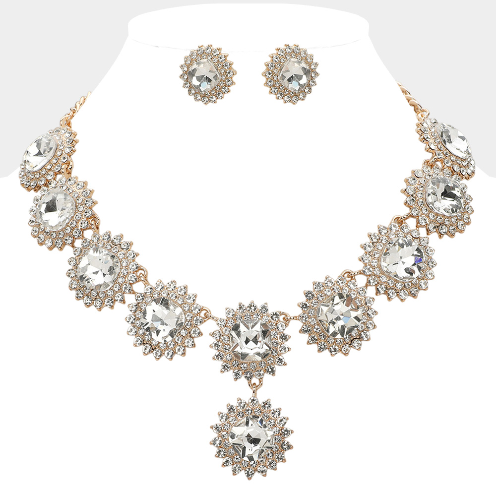 Celluloid Acetate Glass Stone Metal Statement Necklace