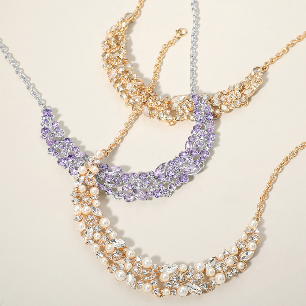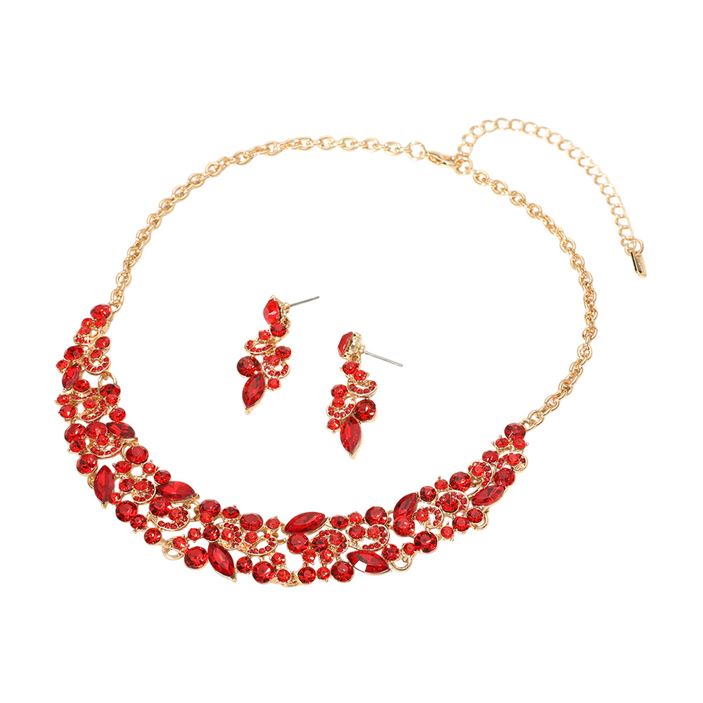 Round Marquise Stone Cluster Embellished Evening Necklace