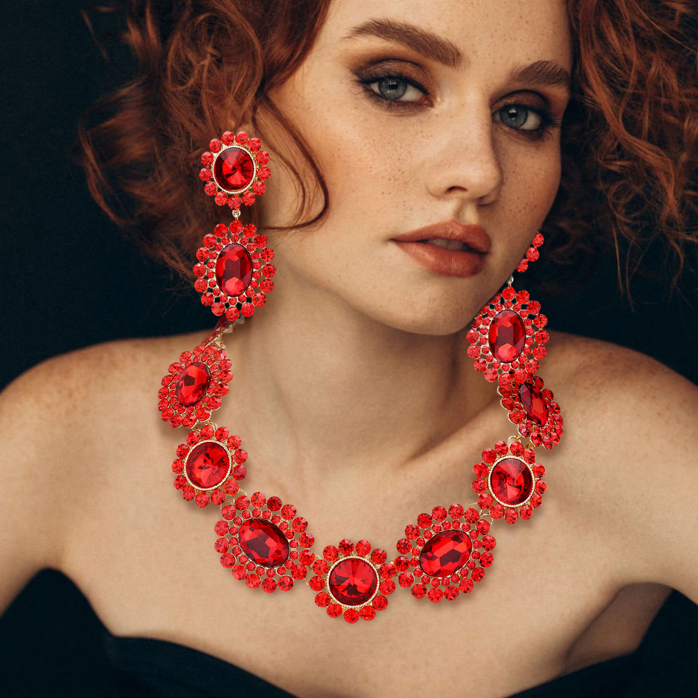 Teardrop Stone Cluster Embellished Evening Statement Necklace