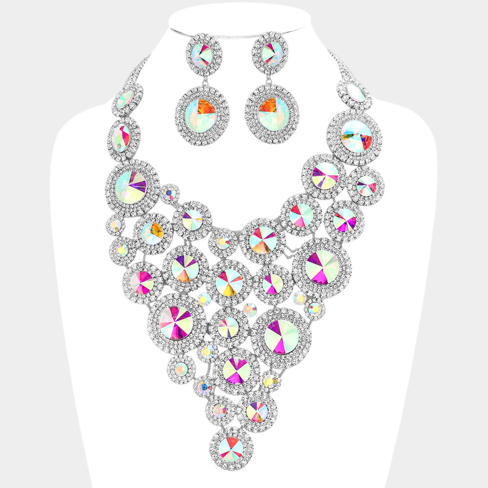 Round Stone Cluster Vine Statement Evening Necklace
