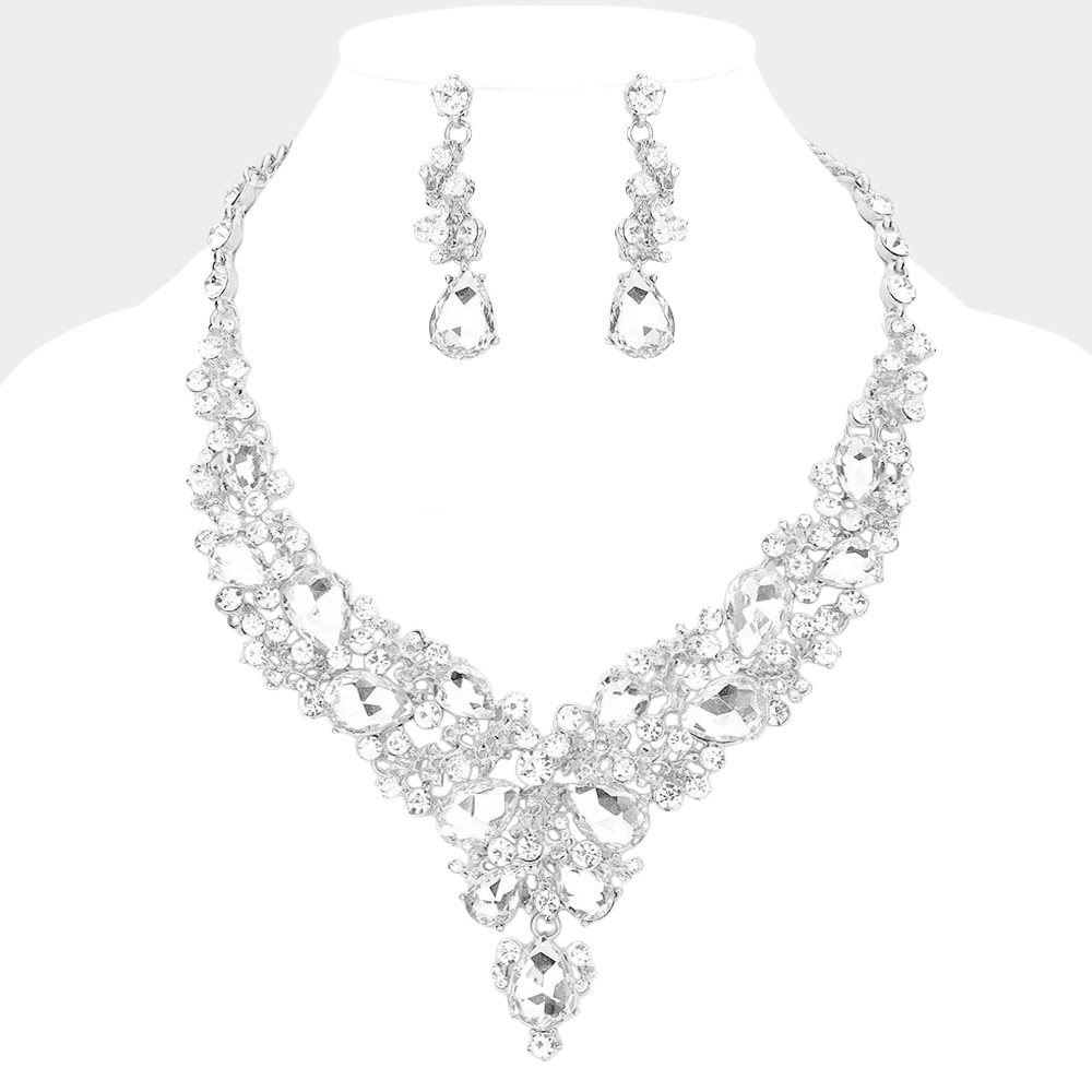 Pearl Round Teardrop Stone Accented Evening Necklace