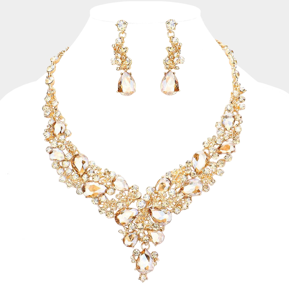 Pearl Round Teardrop Stone Accented Evening Necklace