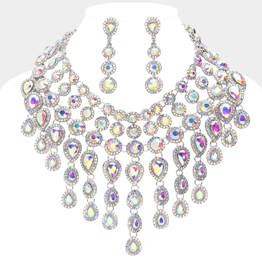 Round Teardrop Stone Cluster Evening Bib Necklace