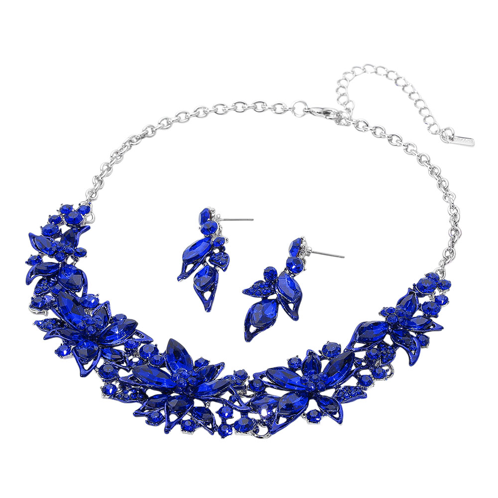 Flower Teardrop Stone Embellished Chandelier Dangle Earrings