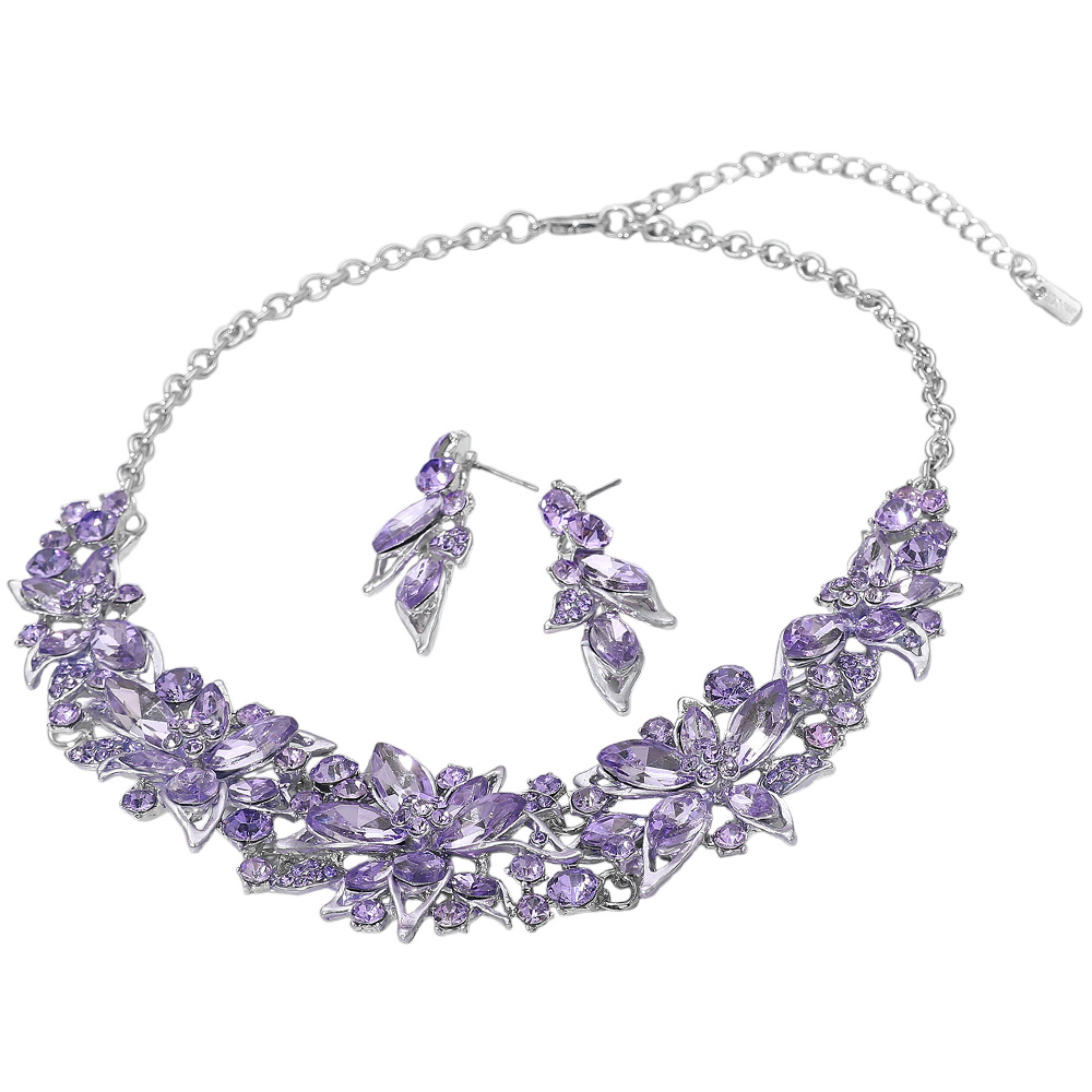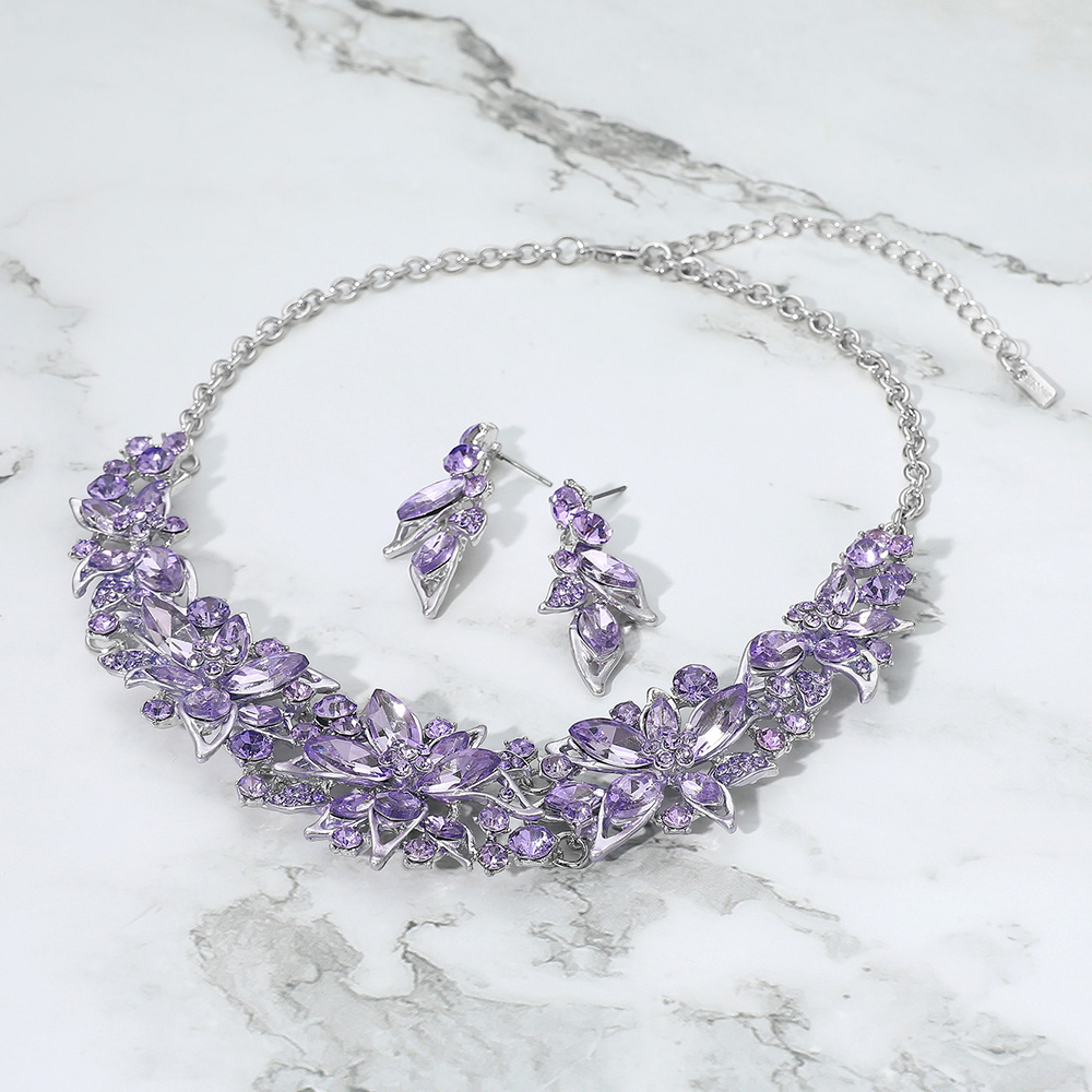 Teardrop Stone Cluster Accent Rhinestone Paved Floral Embellished Collar Statement Evening Necklace