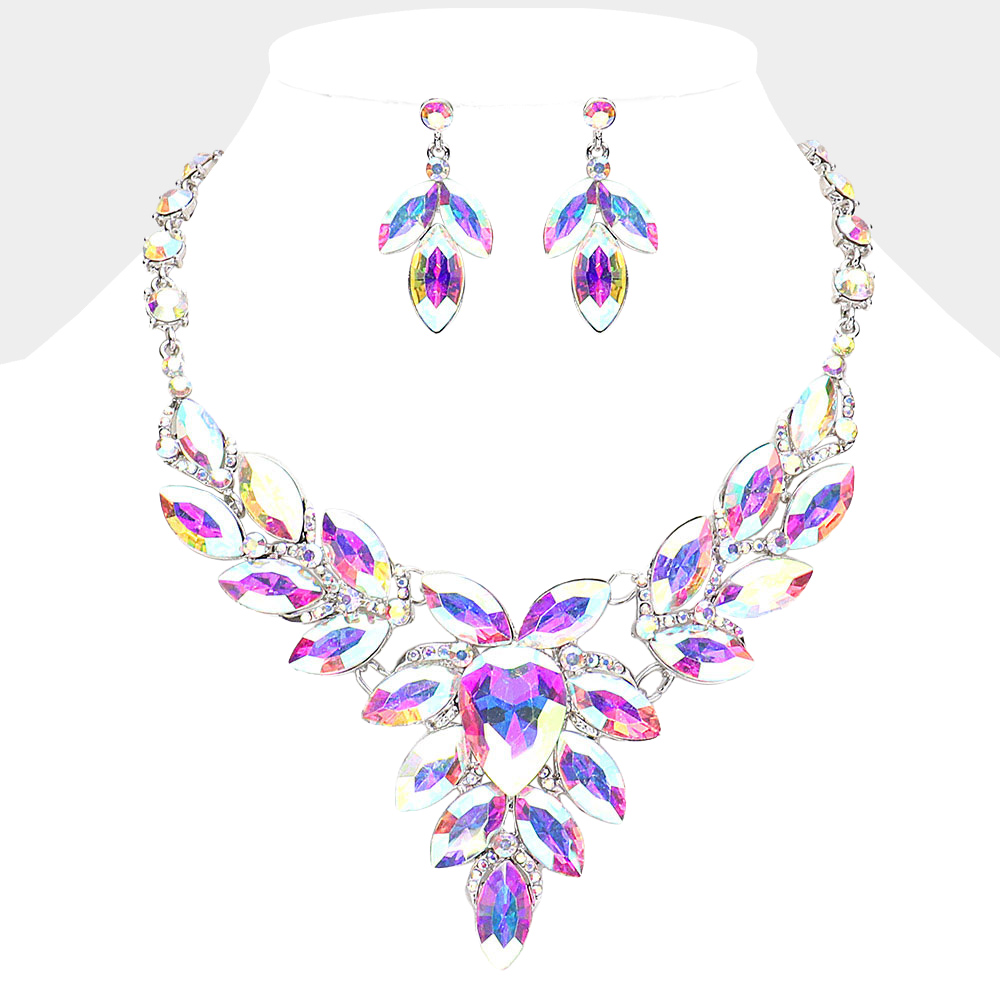 Round Marquise Stone Cluster Embellished Evening Necklace
