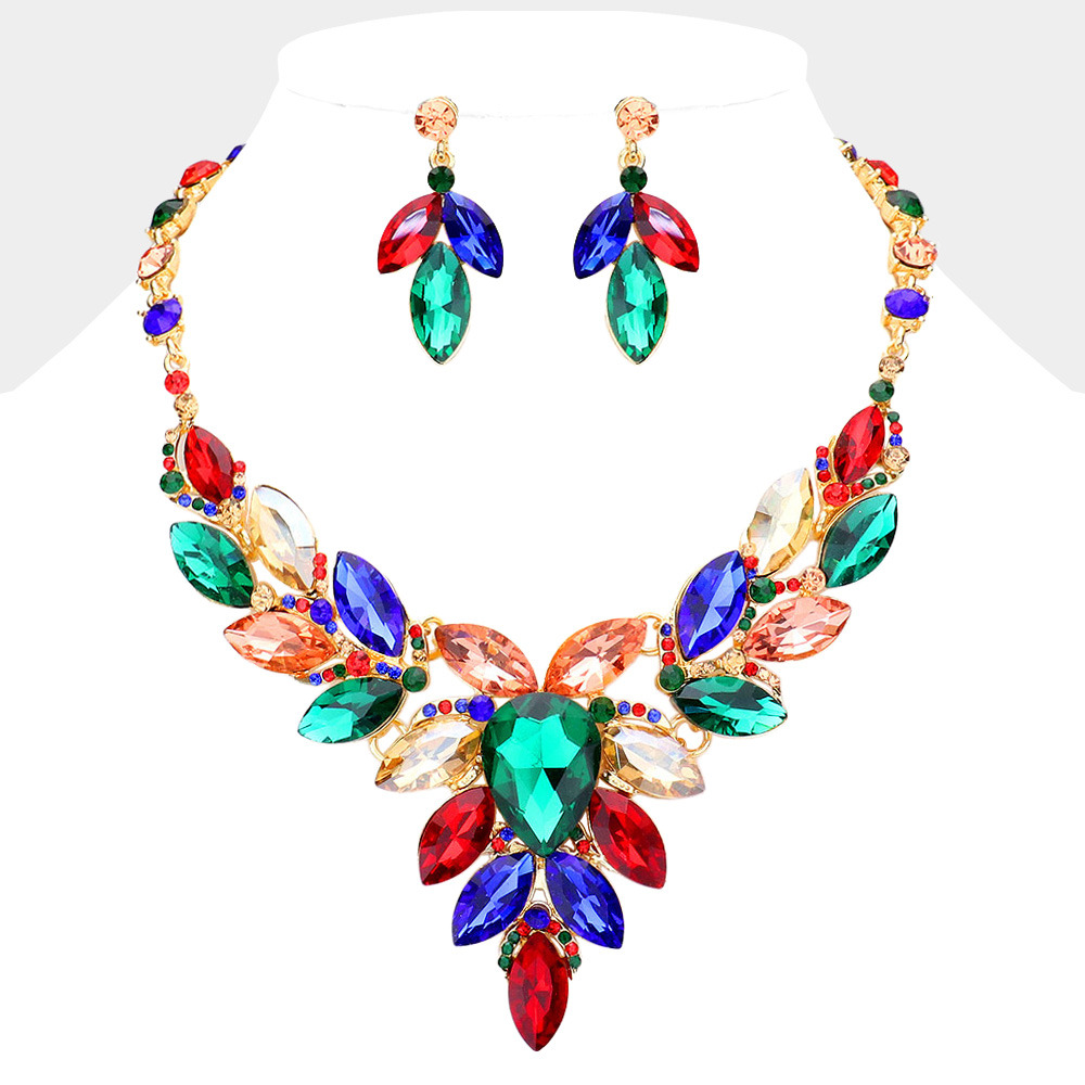 Teardrop Center Marquise Stone Cluster Evening Necklace