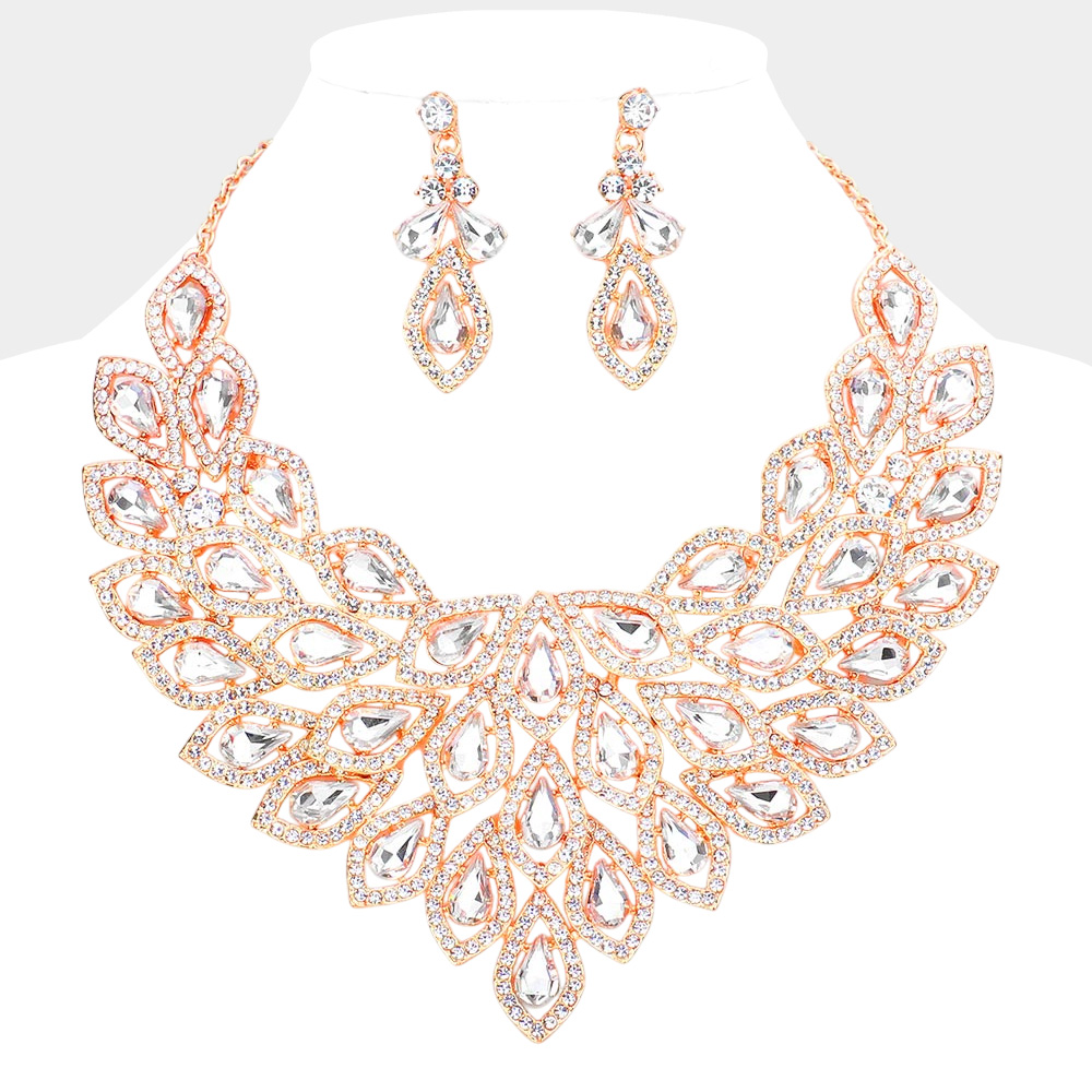 Teardrop Centered Rhinestone Trimmed Cluster Evening Necklace Teardrop Centered Rhinestone Trimmed Cluster Evening Necklace Teardrop Centered Rhinestone Trimmed Cluster Evening Necklace