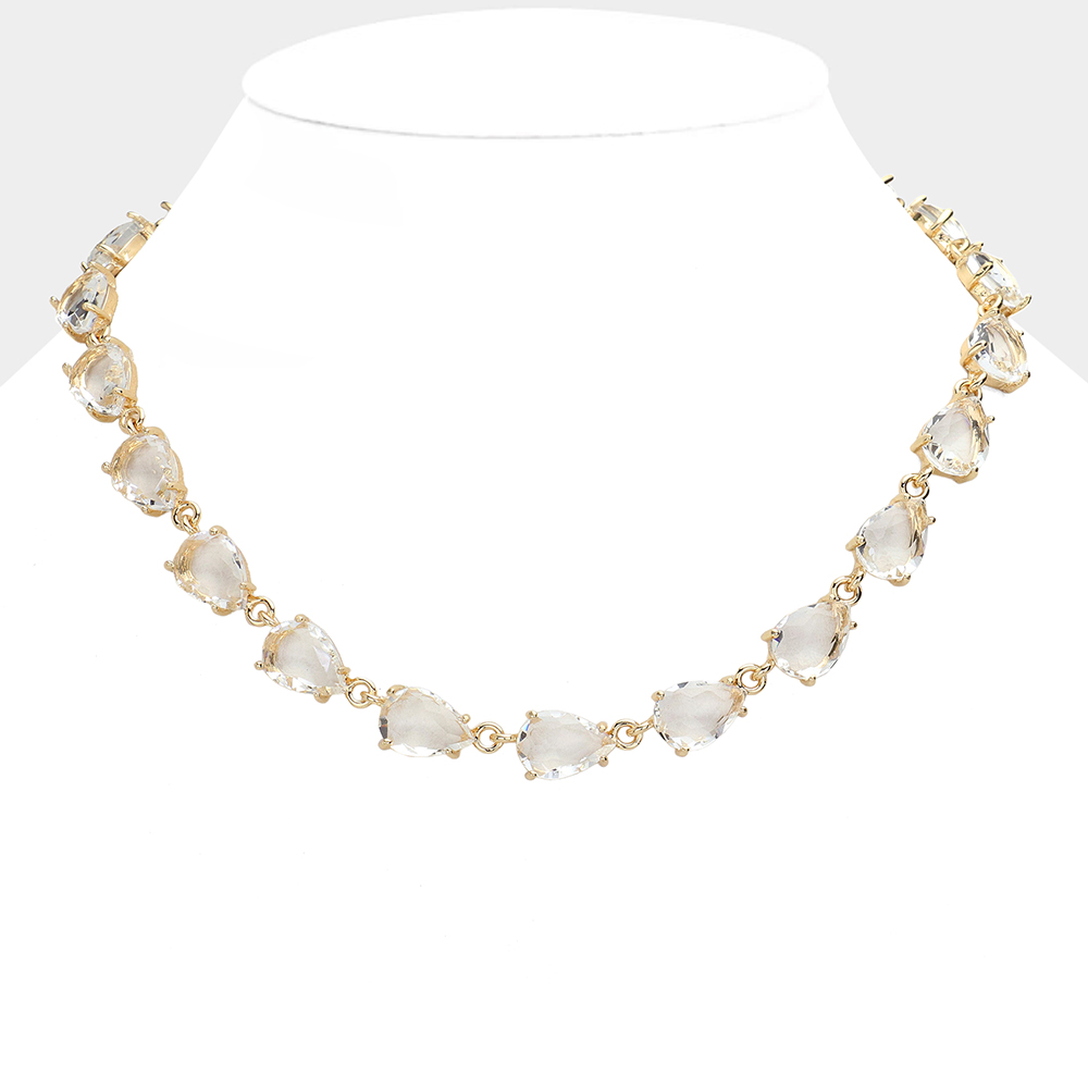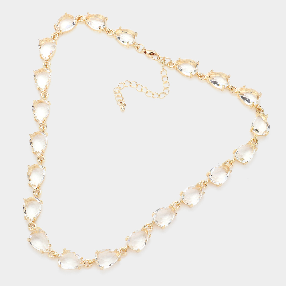 Teardrop Stone Cluster Accent Elegant Butterfly Rhinestone Necklace