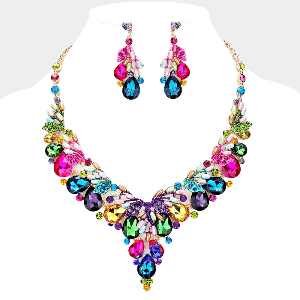 Teardrop Glass Crystal Pearl Vine Evening Necklace
