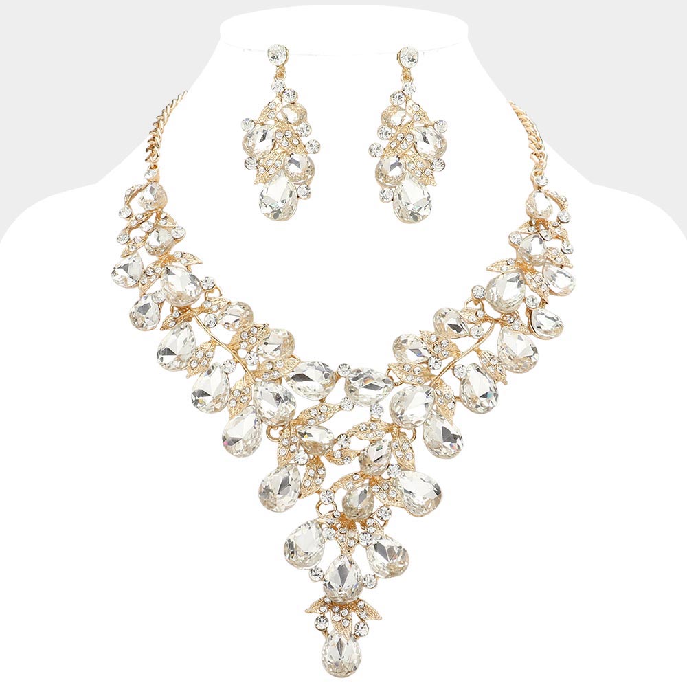Teardrop Glass Stone Cluster Embellished Evening Bib Necklace