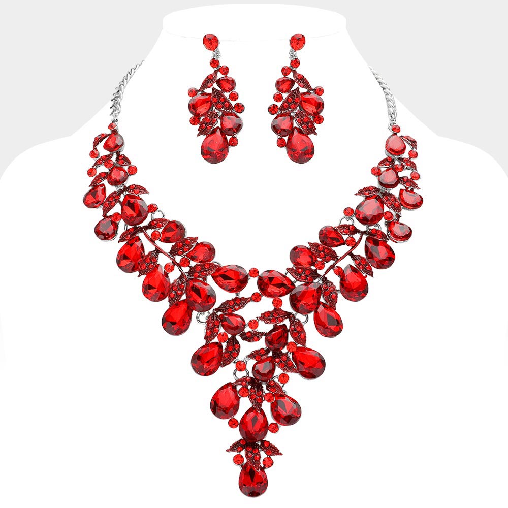 Teardrop Glass Stone Cluster Embellished Evening Bib Necklace