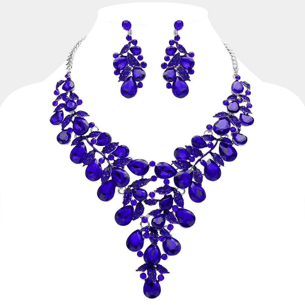 Teardrop Glass Stone Cluster Embellished Evening Bib Necklace