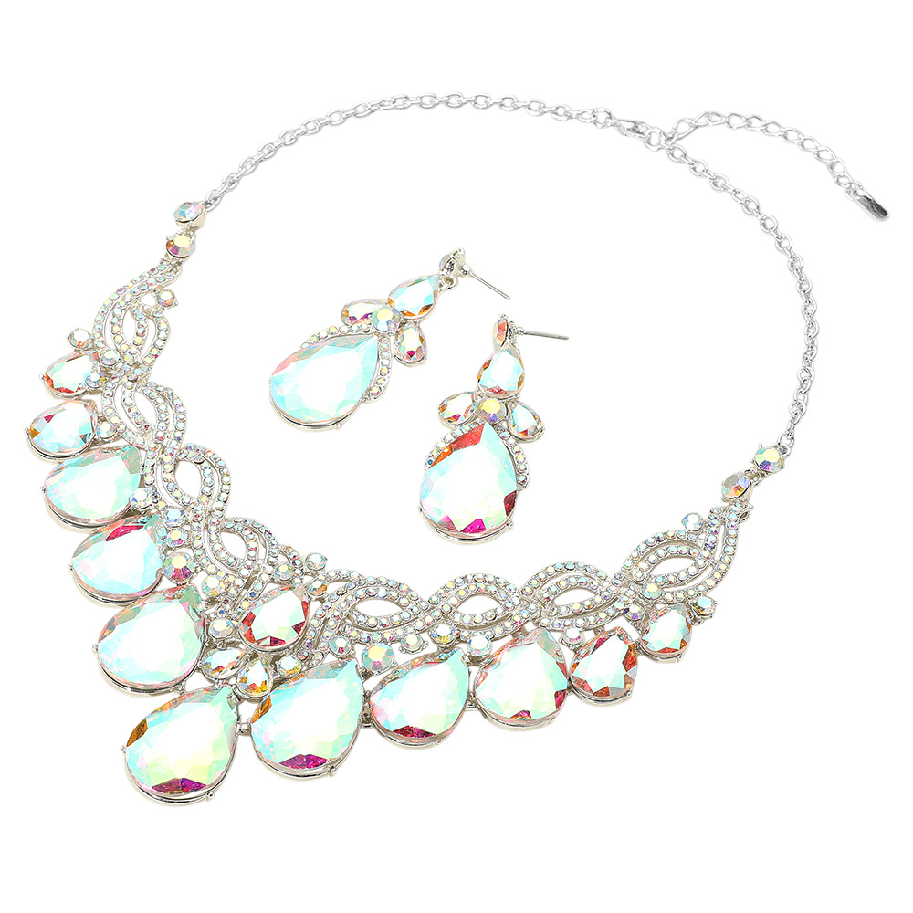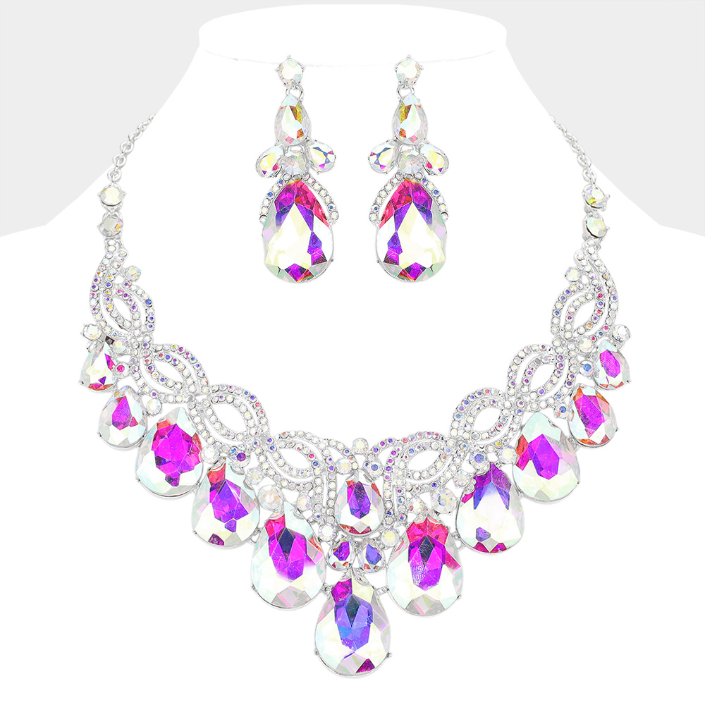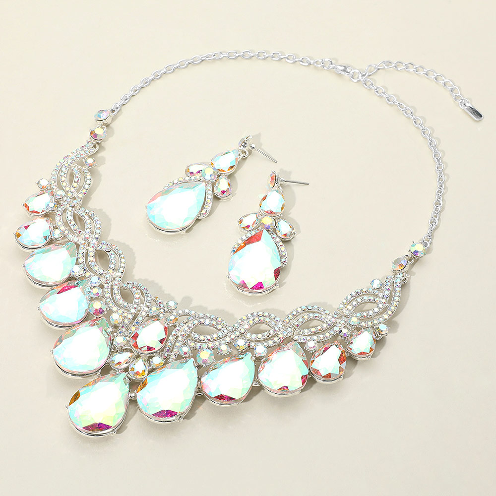 Teardrop Glass Stone Cluster Embellished Evening Necklace