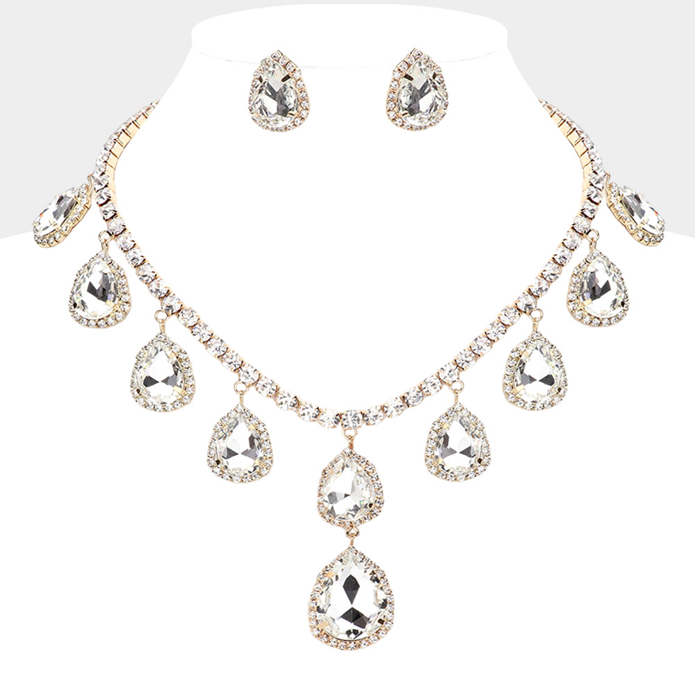 Teardrop Glass Stone Cluster Station Evening Necklace