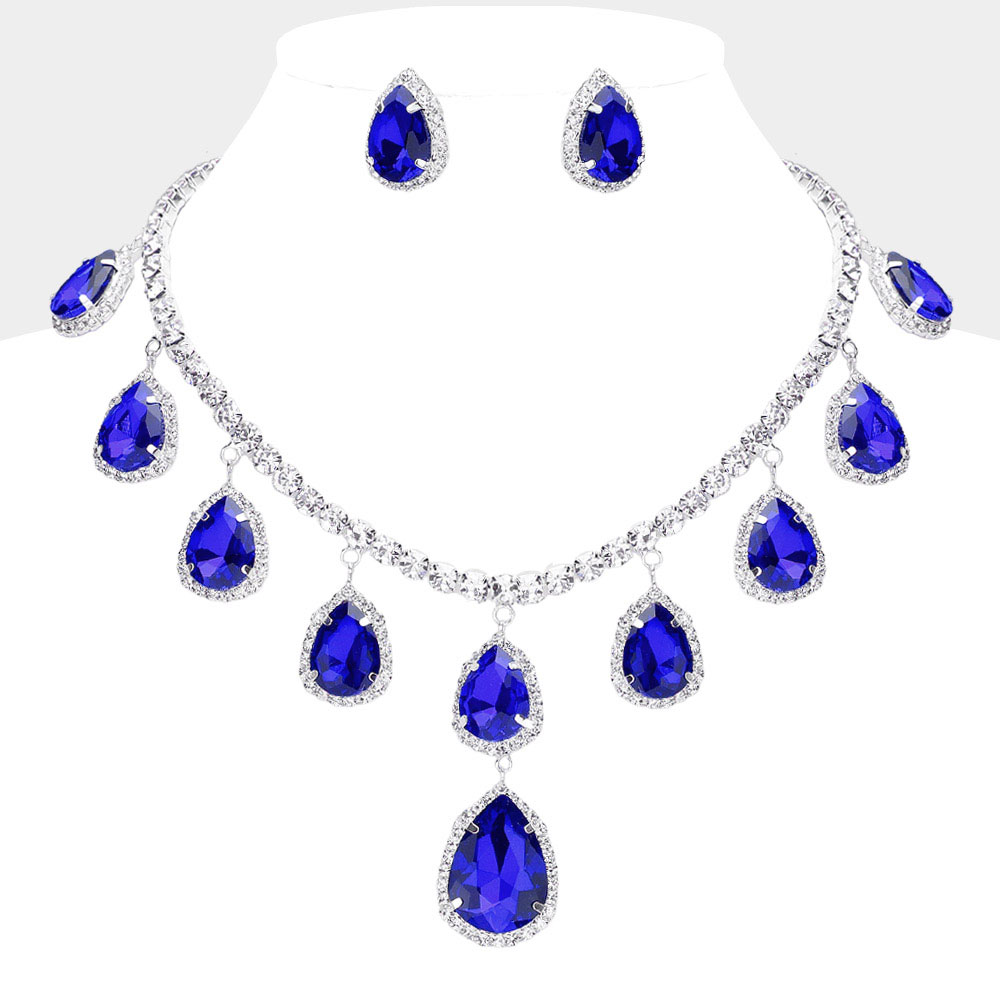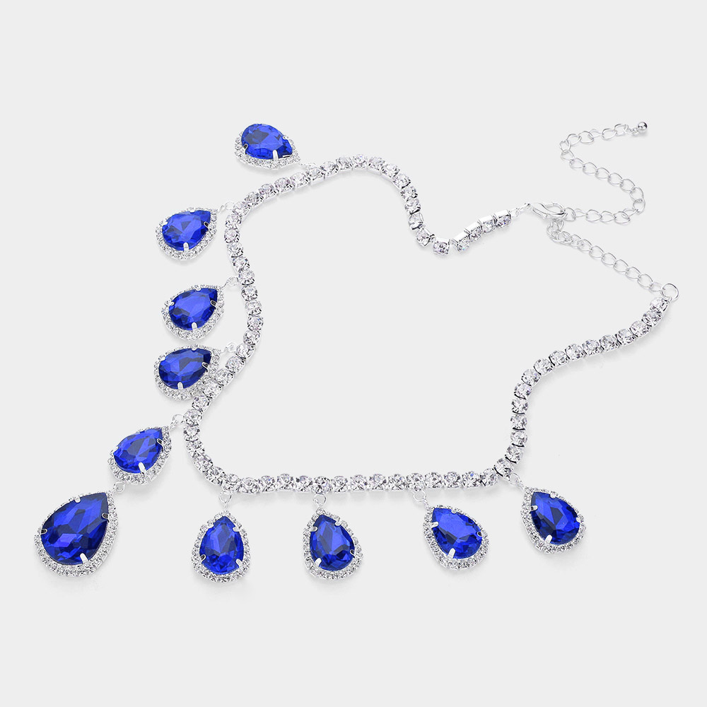Teardrop Glass Stone Cluster Station Evening Necklace