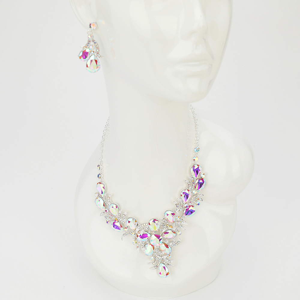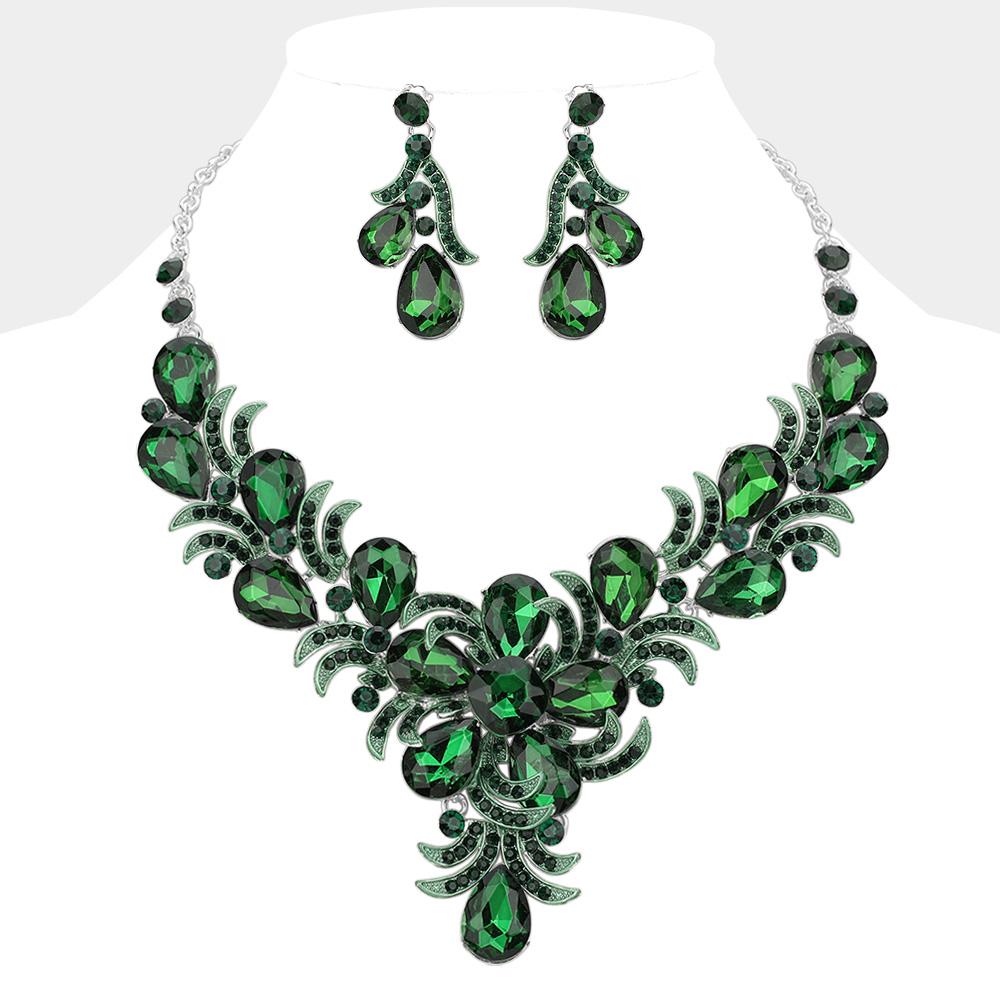 Teardrop Glass Stone Flower Pointed Evening Necklace