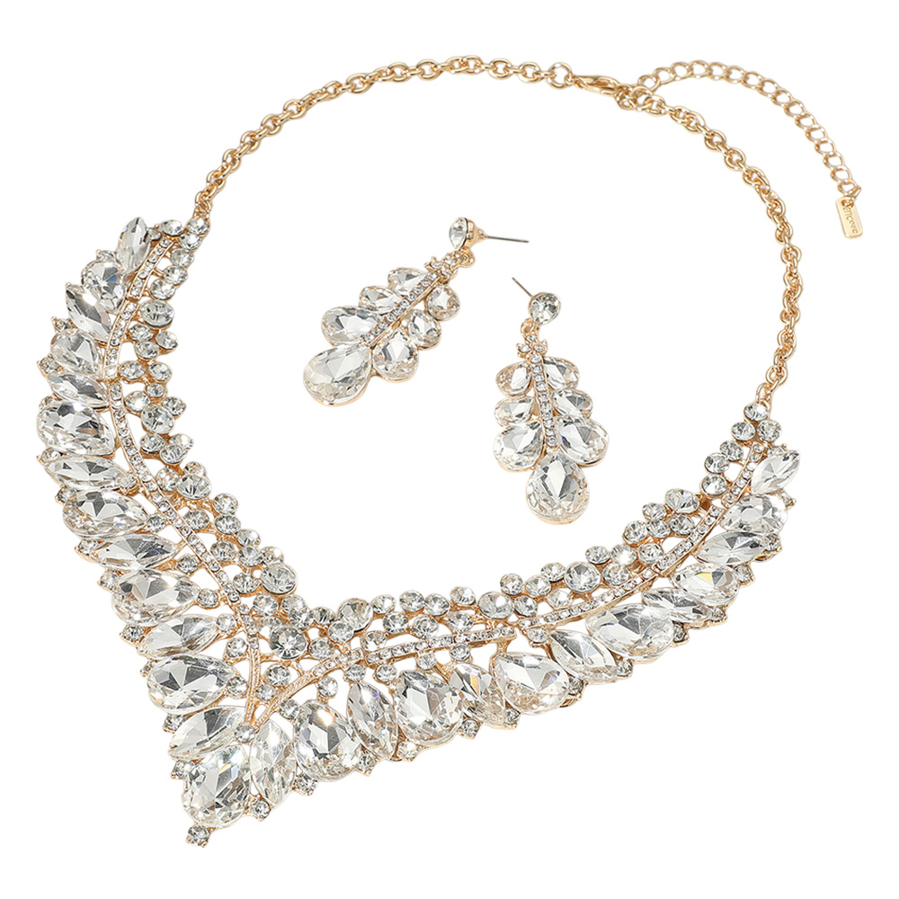 Teardrop Marquise Round Stone Embellished V Shaped Evening Necklace