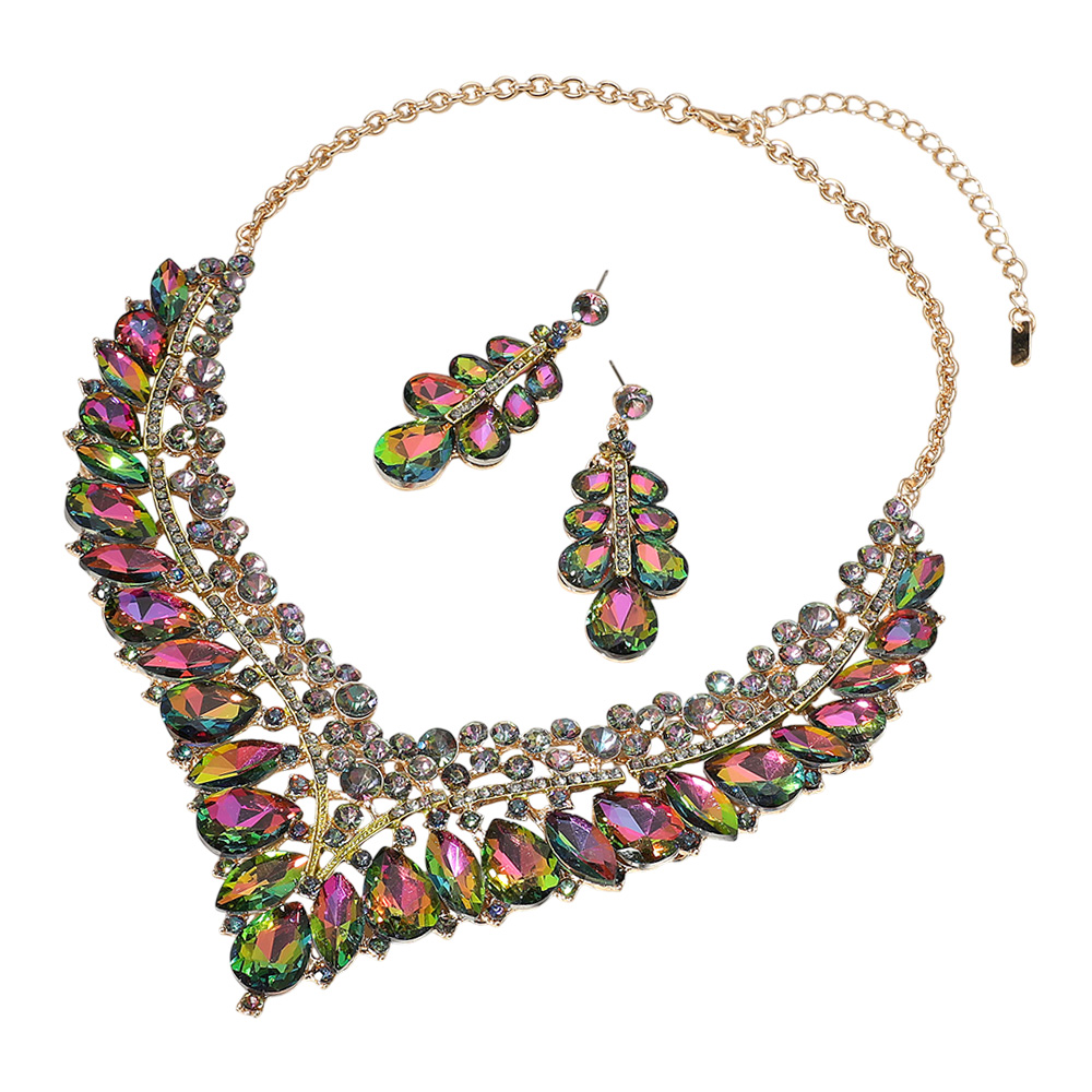Teardrop Marquise Round Stone Embellished V Shaped Evening Necklace