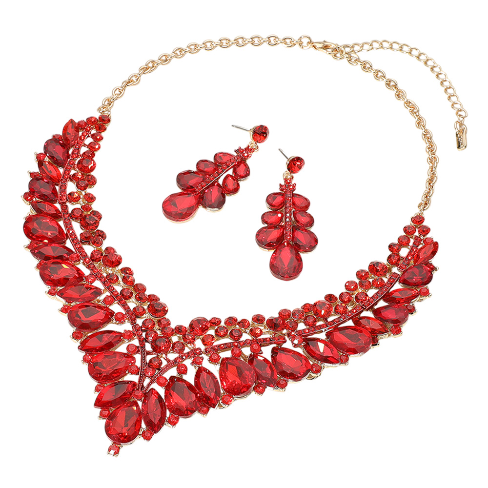 Teardrop Marquise Round Stone Embellished V Shaped Evening Necklace