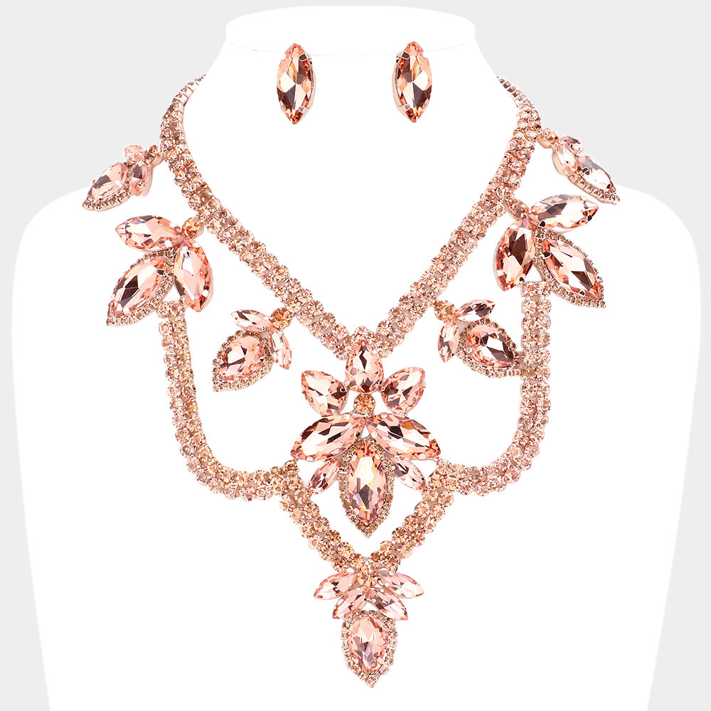 Teardrop Marquise Stone Accented Draped Evening Necklace