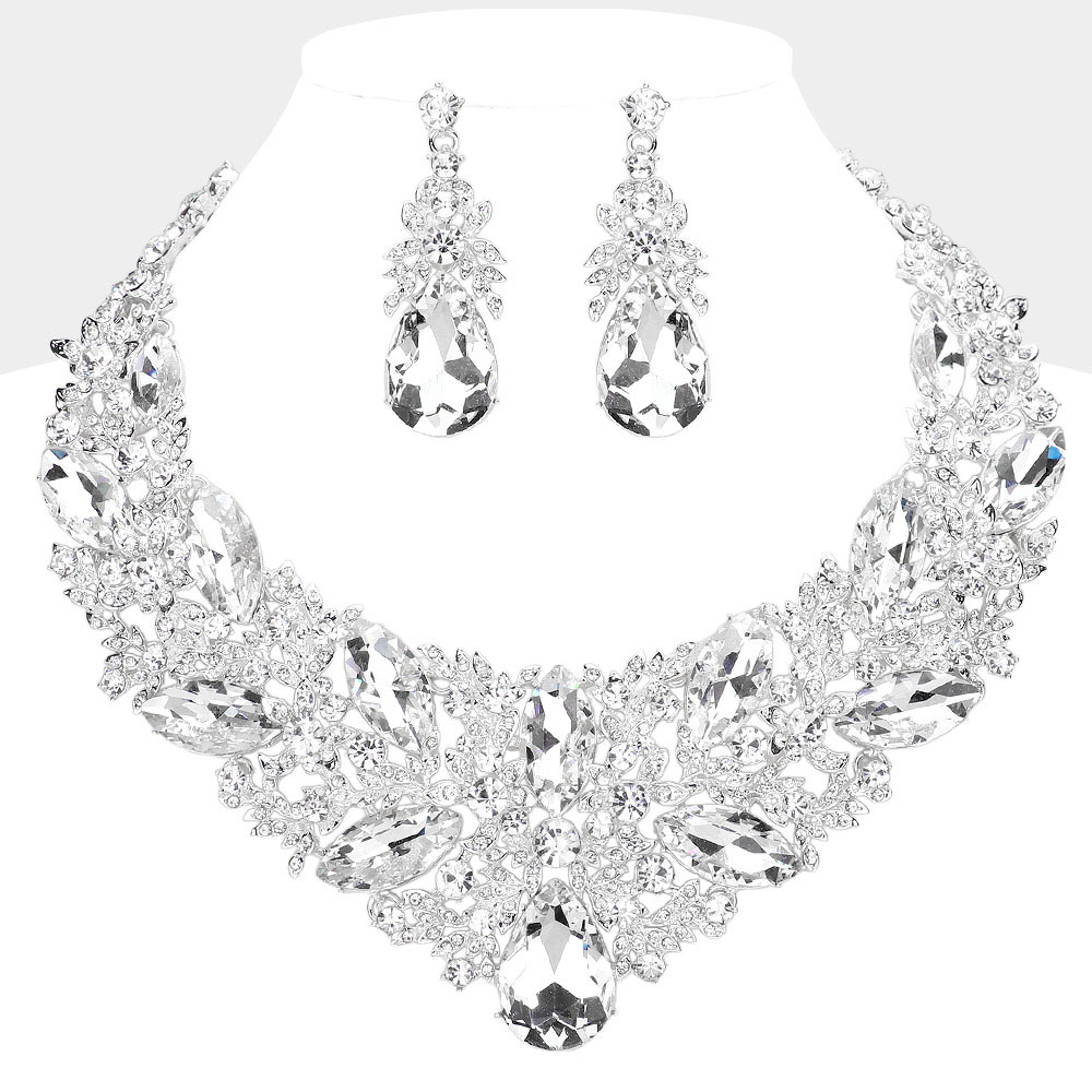 Teardrop Marquise Stone Cluster Embellished Evening Necklace