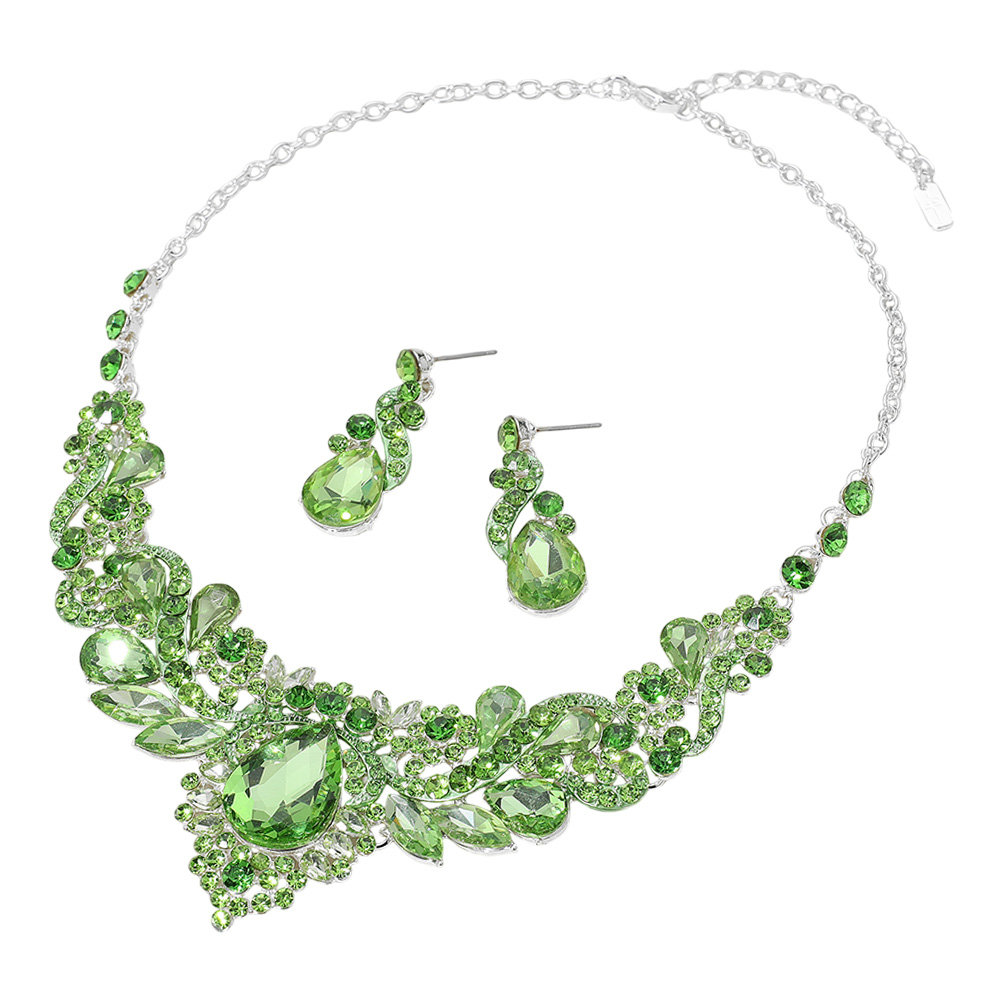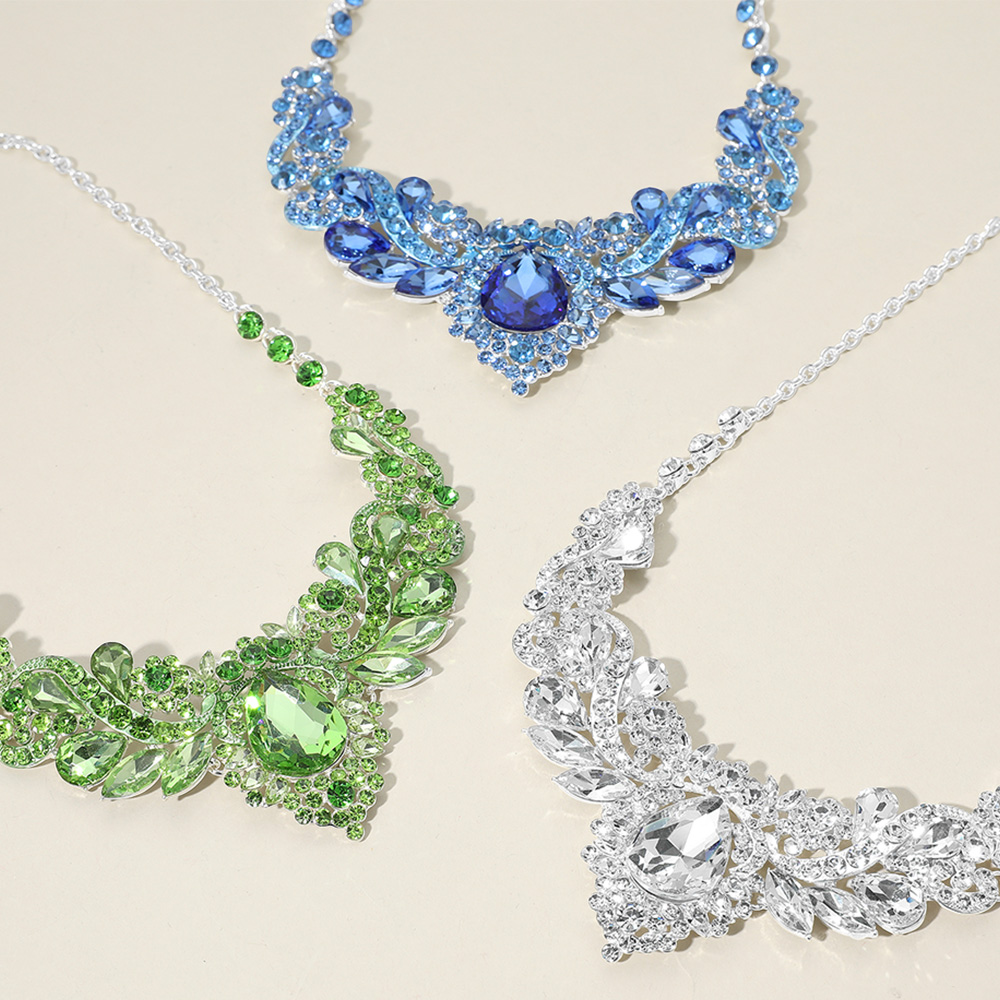 Teardrop Marquise Stone Cluster Embellished Evening Necklace