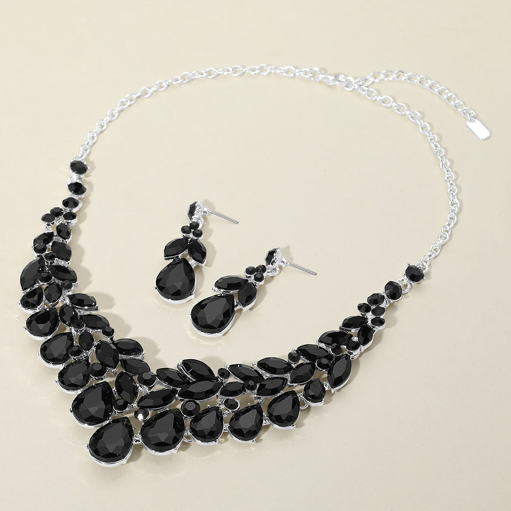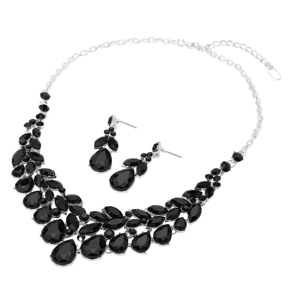 Teardrop Marquise Stone Cluster Embellished Evening Necklace