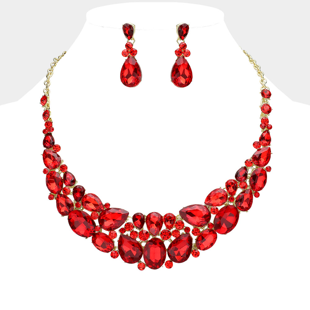 Marquise Stone Flower Accented Chandelier Evening Earrings