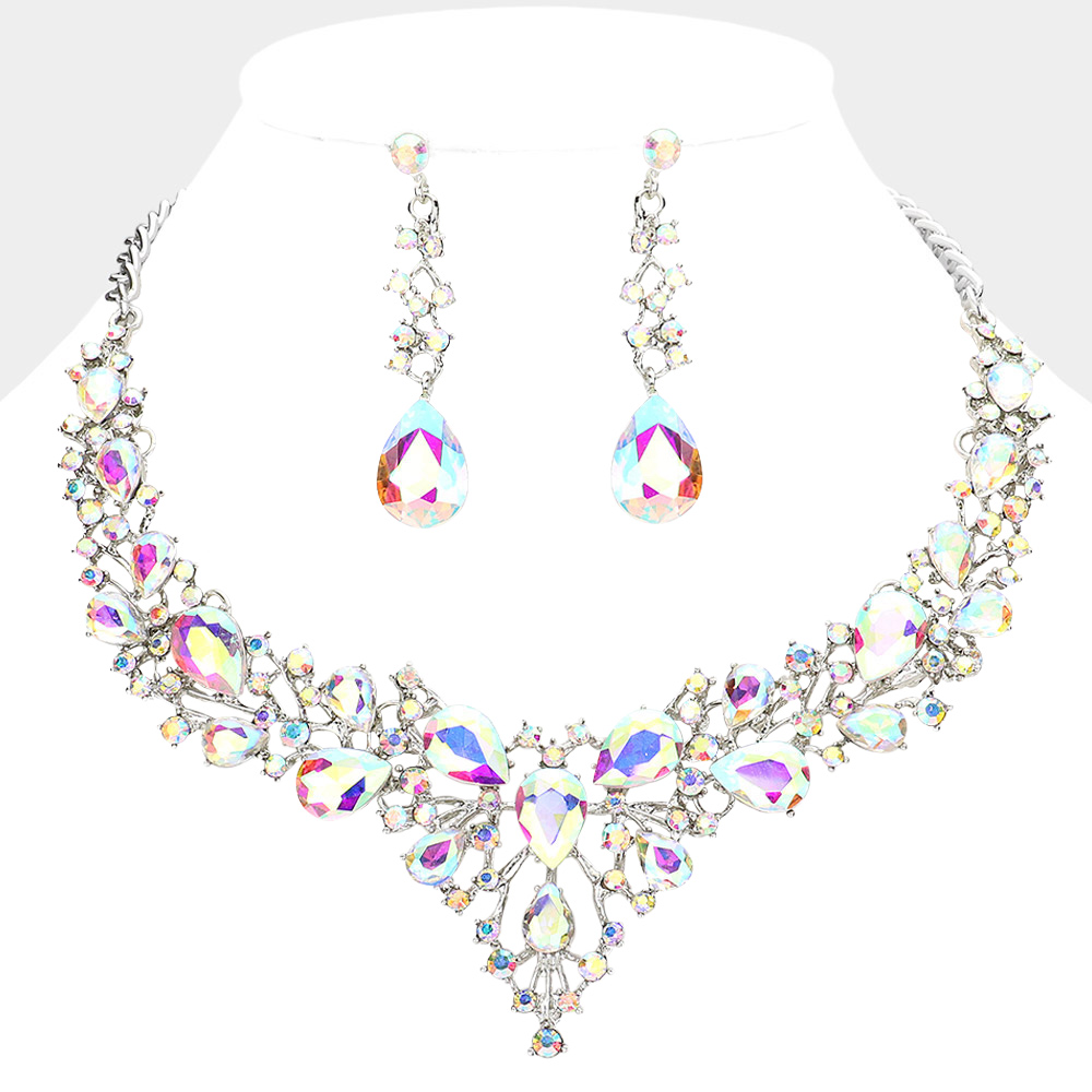 Marquise Crystal Rhinestone Drop Necklace Clip On Earring Set