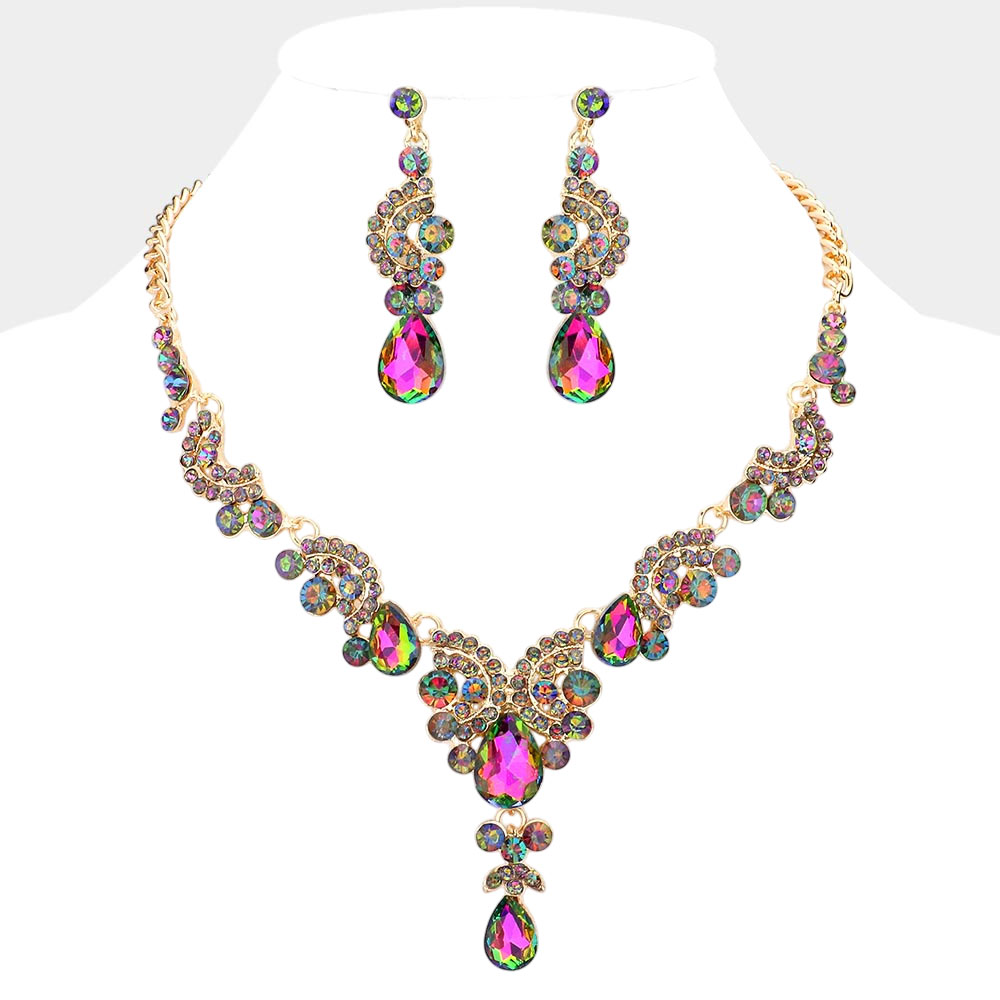 • Stunning teardrop crystal necklace and earring set designed with intricate clustered detailing and sparkling stones. Features a graceful V-shaped centerpiece and matching drop earrings, perfect for formal events, weddings, parties, and special occasions. A glamorous statement set that elevates any outfit.