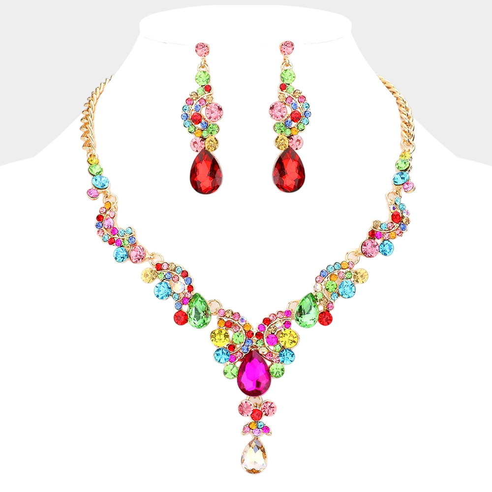 Crystal Rhinestone Trim Teardrop Collar Evening Necklace