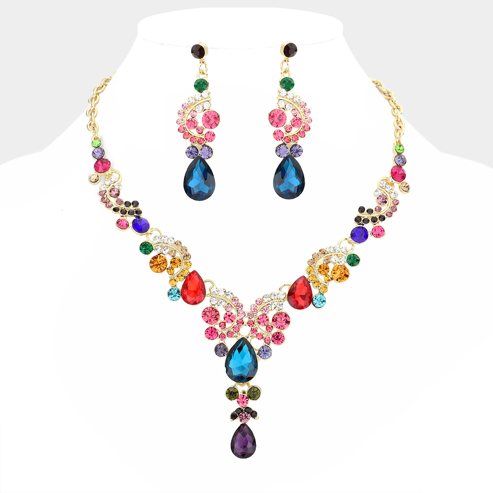 Teardrop Stone Cluster Beaded Stretch Evening Bracelet